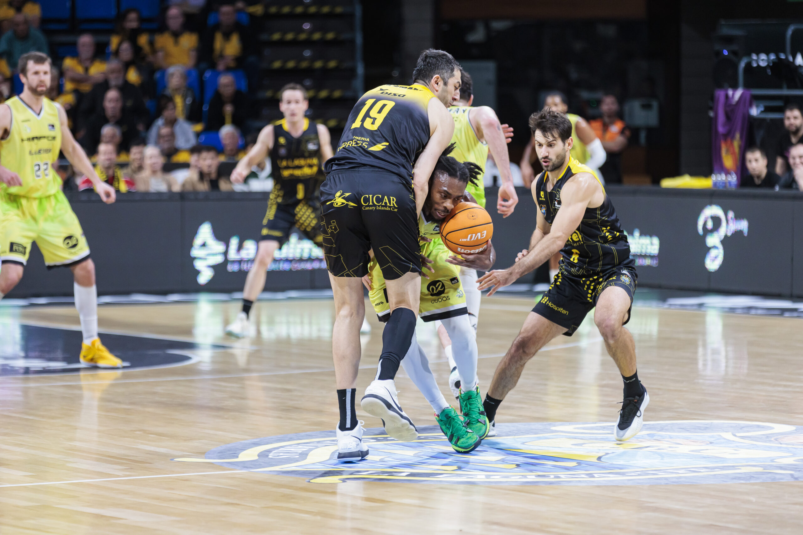 Lleida reaccionó con un parcial que obligó a Txus Vidorreta a detener el choque, pero tras el tiempo muerto los aurinegros volvieron a ajustar. El control del rebote, el esfuerzo defensivo colectivo y la presencia constante de Shermadini, también atrás, permitieron recuperar el mando en el electrónico y estirar la renta hasta los diez puntos al descanso (49-39). Sin un juego brillante, la escuadra isleña había hecho lo más difícil: colocarse en una posición favorable.