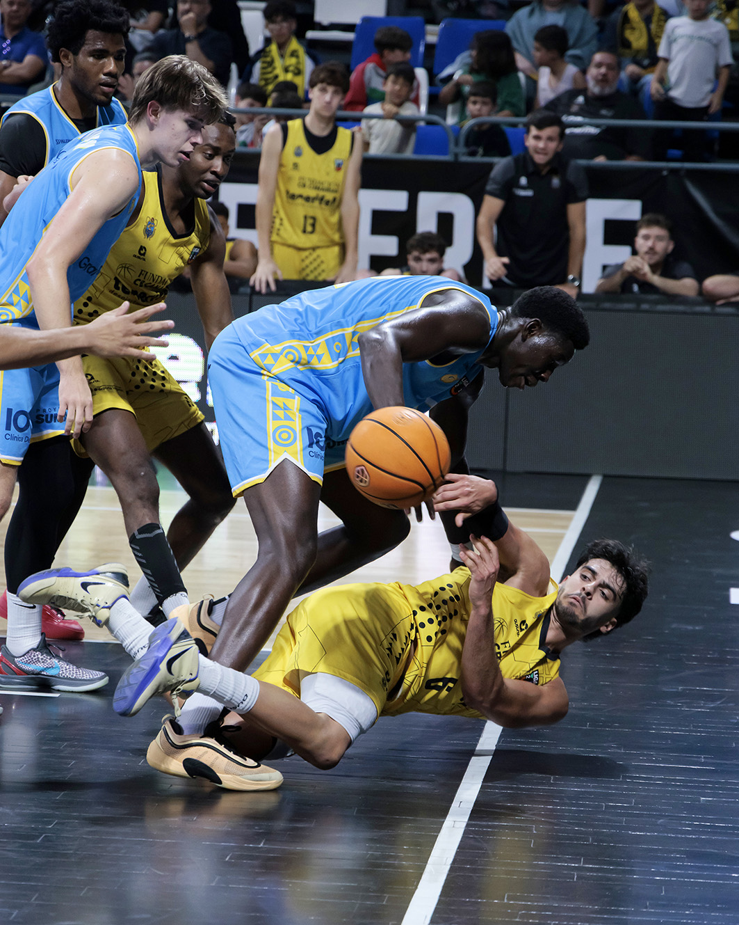 Desde el inicio, los de amarillo y negro marcaron territorio con la actividad de David Acosta en las continuaciones y un planteamiento serio en defensa, aunque sin poder despegarse del todo debido a su desacierto desde el tiro libre (1/6 en el primer cuarto) y las tempranas dificultades de Sangaré con las faltas. El Gran Canaria, apoyado en el acierto de Brayan González y la presencia física de sus interiores, encontró respuesta para mantenerse cerca en el marcador (20-17, minuto 10), aunque el filial canarista ya mostraba más recursos en rotación, con Babel Lipasi y Louis Riga aportando puntos importantes.