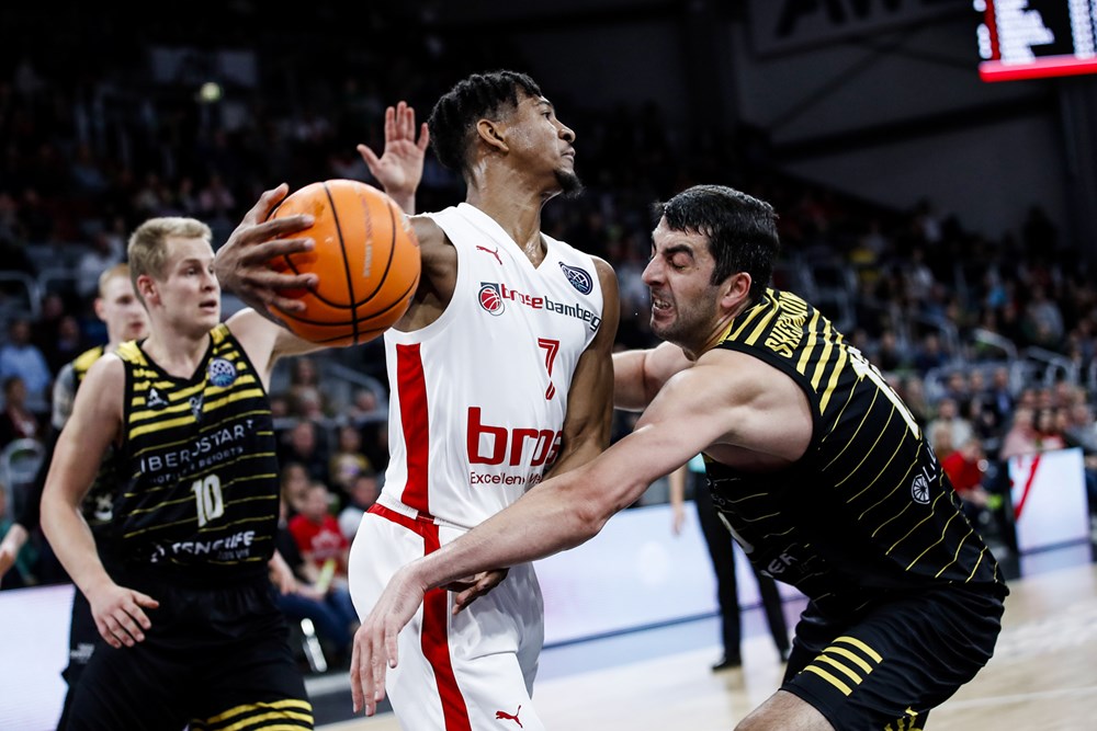El Brose Bamberg, que llegó a este partidos sin opción alguna para continuar compitiendo en la máxima competición FIBA, salió como quien va a la guerra, deportivamente hablando. Eso, la permisividad arbitral durante todo el encuentro y el acierto de Taylor dio un margen de nueve puntos (34-25) en una fase del partido con un Iberostar Tenerife con muchas dudas en su juego de ataque, aunque pudo llegar “vivo” al descanso (38-34).