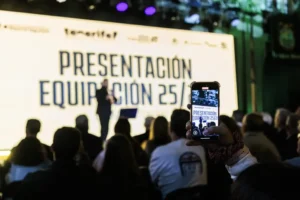 San Cristóbal de La Laguna no solo late en sus calles centenarias, también en la camiseta de su equipo representativo. El Club Baloncesto Canarias presentó anoche sus equipaciones para la temporada 2025-26 en un acto multitudinario frente a la fachada del Ayuntamiento de Aguere, junto a la Plaza de Abajo (Plaza del Adelantado), convertido para la ocasión en escenario aurinegro. La expectación se rompió con un gesto cargado de simbolismo: el diseño de la nueva indumentaria canarista está inspirado en el histórico plano de la ciudad elaborado por Leonardo Torriani en el siglo XVI, el documento cartográfico más antiguo que se conserva de la urbe lagunera.