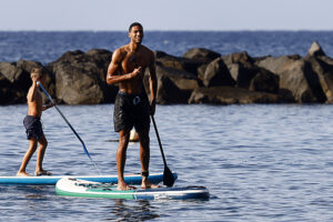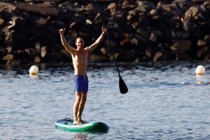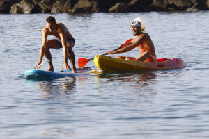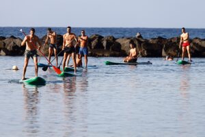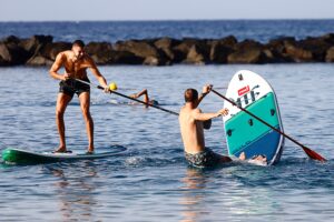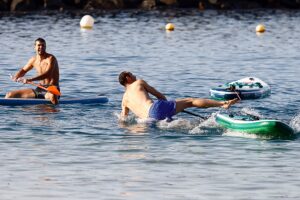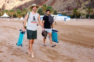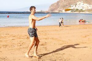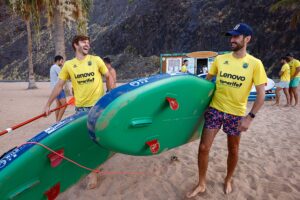 La popular playa de Las Teresitas contó en el día de ayer con la presencia de la primera plantilla del Lenovo Tenerife, solo faltó a la cita el pívot internacional georgiano Gio Shermadini, en una actividad deportiva muy especial. Por su cuenta o con la ayuda de un compañero, los aurinegros disfrutaron de este regalo de la naturaleza, una oportunidad muy bien aprovechada, lejos del parqué y las canastas en su primera semana de entrenamientos conjuntos.