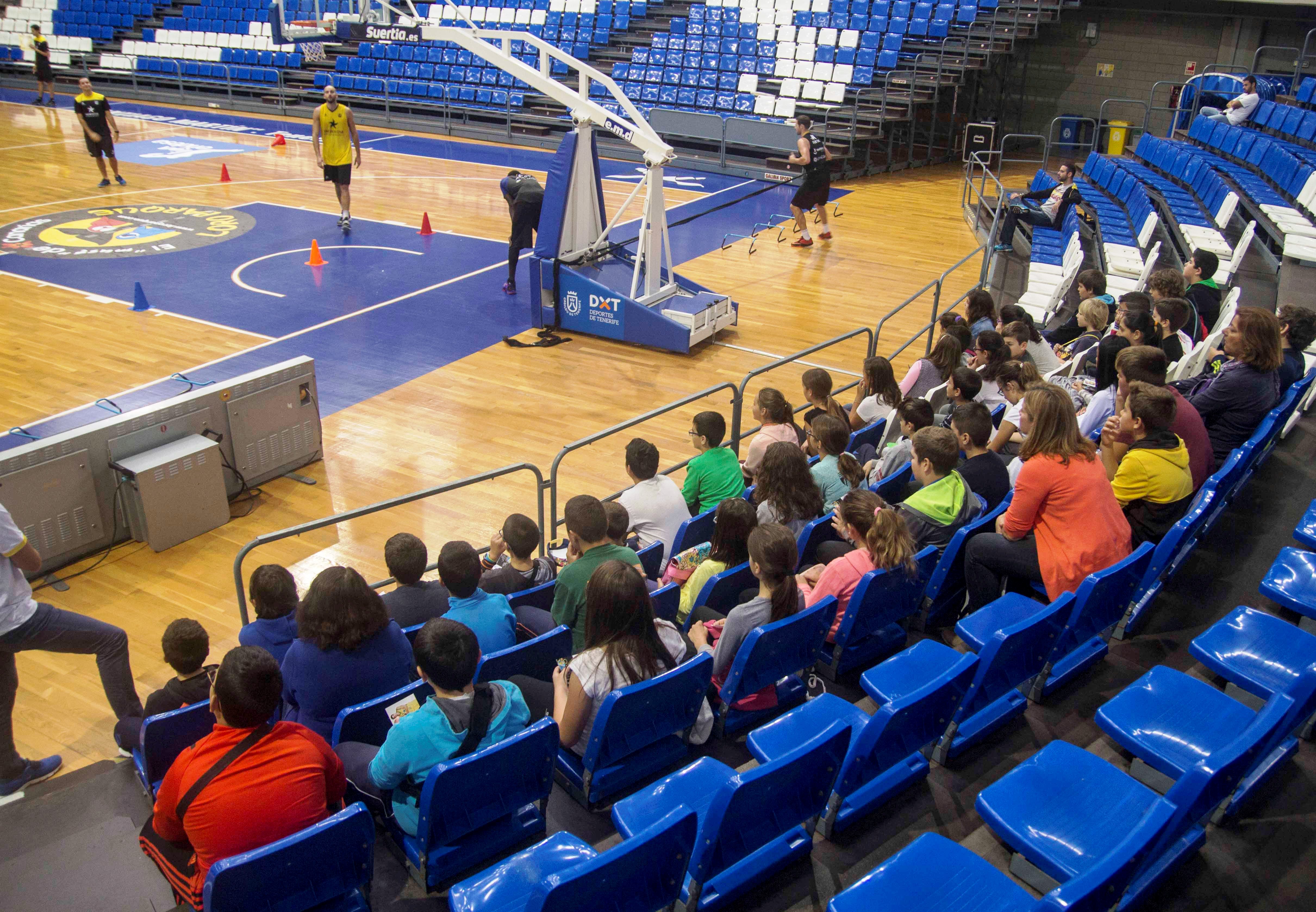 Más de 40 alumnos pertenecientes a 5º y 6º de Primaria del CEIP El Ortigal visitaron las instalaciones del Pabellón de Deportes de Tenerife Santiago Martín para conocer de primera mano cómo se ejercita la plantilla del C. B. Canarias así como los distintos departamentos de trabajo del organigrama canarista.
