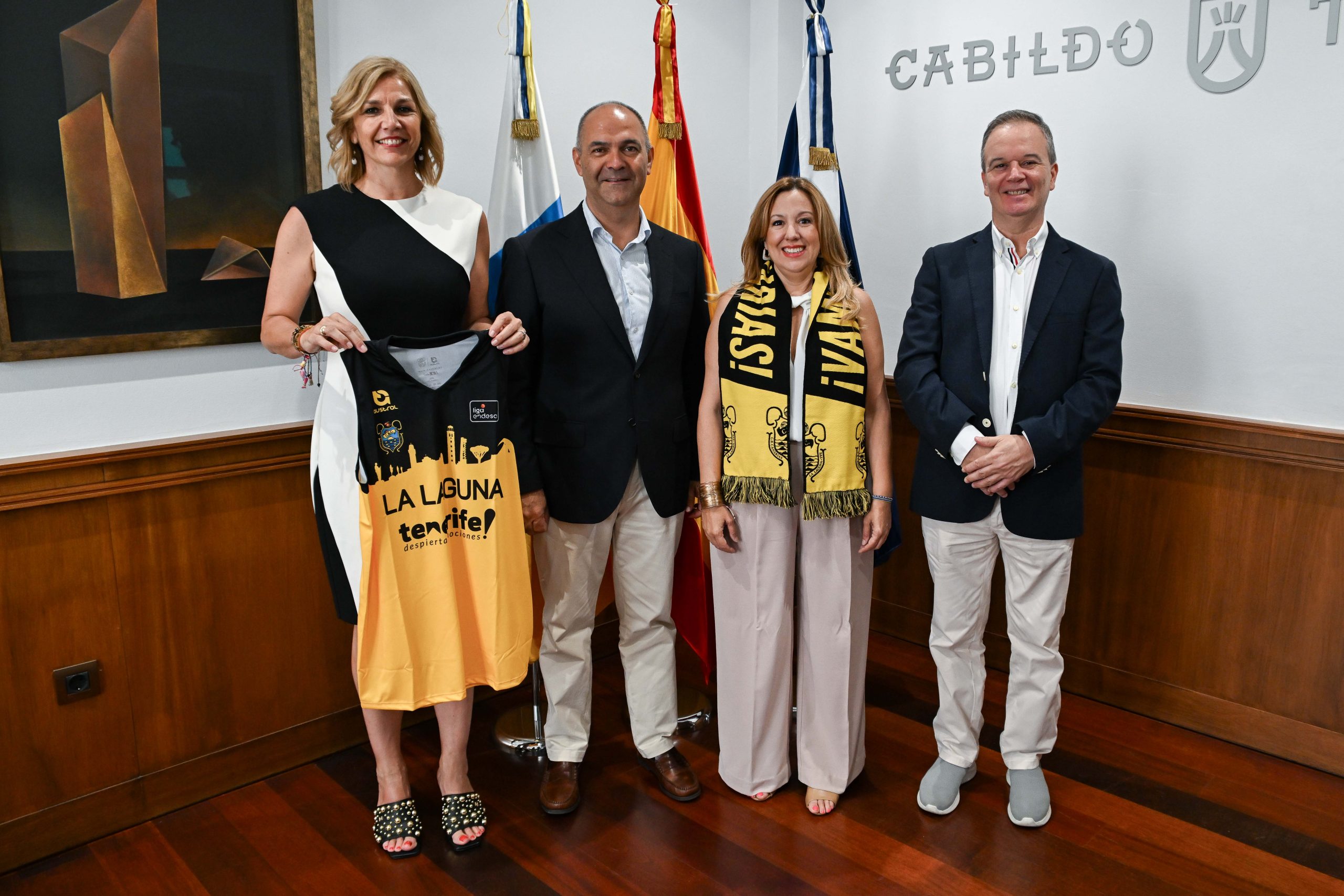 El Cabildo Insular de Tenerife recibió este jueves a Aniano Cabrera, nuevo presidente del Club Baloncesto Canarias, junto a Eusebio Díaz, director general del club amarillo y negro. La reunión contó con la participación de la presidenta de la corporación insular, Rosa Dávila, y la consejera de Deportes, la ex baloncestista Yolanda Moliné, en un encuentro que marca el inicio de una nueva fase de colaboración institucional centrada en el baloncesto y el compromiso con el club de La Laguna.