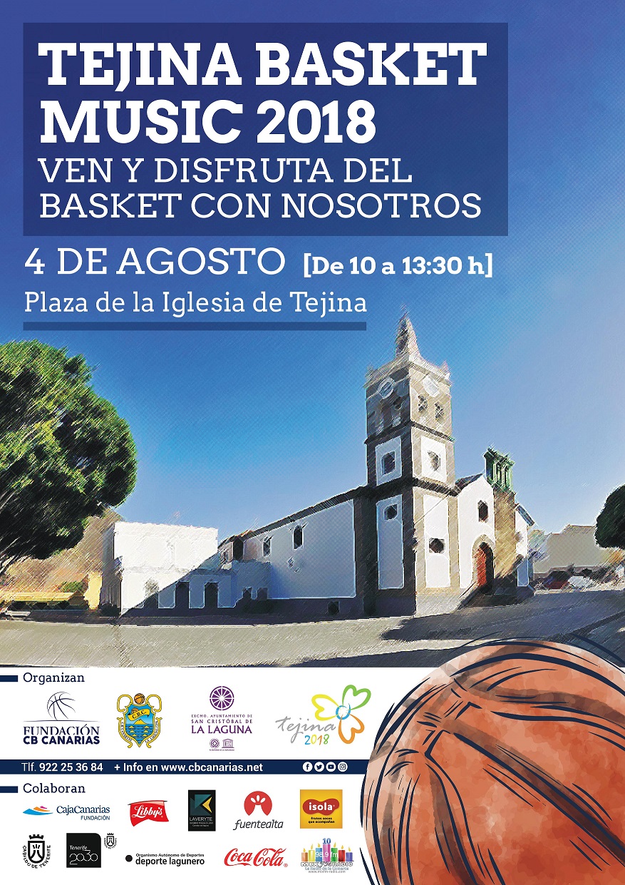 La Fundación Club Baloncesto Canarias y el Ayuntamiento de La Laguna, a través de la Comisión de Fiestas de San Bartolomé de Tejina 2018, desarrollarán una jornada de Baloncesto y Música el sábado día 4 de agosto, en la plaza de la Iglesia de Tejina. La iniciativa, incluida en el marco de las actividades festivas del pueblo lagunero, incluirá diversas actividades para toda la familia, con el baloncesto y la música como elementos principales.