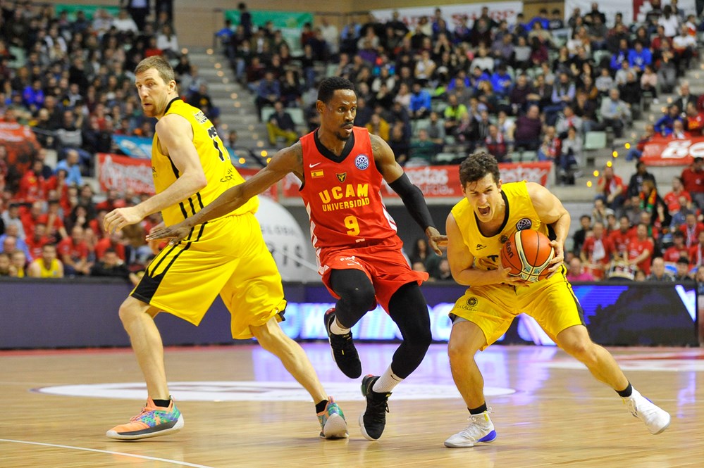 Incidencias: Partido de ida de los octavos de final de la Liga de Campeones de Baloncesto disputado en el Palacio de los Deportes de Murcia ante unos 6.000 espectadores.