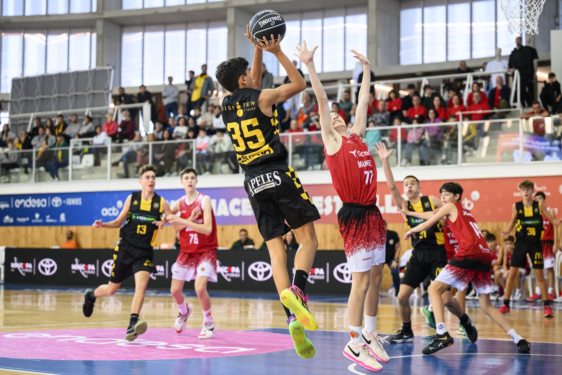 Malas noticias para los canaristas. El equipo infantil Cajasiete Canarias no estará presente en la fase final de la Minicopa Endesa que se celebrará el próximo mes de febrero en Málaga y en paralelo a la Copa del Rey, al caer por partida doble en la jornada de hoy. Esta mañana, los tinerfeños perdían en el último cuarto ante Casademont Zaragoza por 59-51, para hacer lo propio esta tarde ante Bàsquet Manresa por un contundente 99-69. Los aurinegros, dirigidos por el catalán Marc Guart, vuelven a casa con el balance de una victoria, la conseguida ayer ante Fundación Breogán, y dos derrotas, lo que los deja fuera de la Fase Final Málaga 2023.