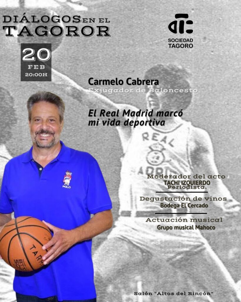 El próximo jueves 20 de febrero, a las 20.00 horas, el ciclo de encuentros ‘Diálogos en el Tagoror’ recibirá a una de las figuras más emblemáticas del baloncesto español y FIBA: Carmelo Cabrera. El exjugador grancanario, reconocido por su talento y visión de juego, ofrecerá una conferencia titulada ‘El Real Madrid marcó mi vida’, en la que compartirá anécdotas, experiencias y reflexiones sobre su trayectoria en el club blanco y su impacto en su desarrollo profesional y personal.