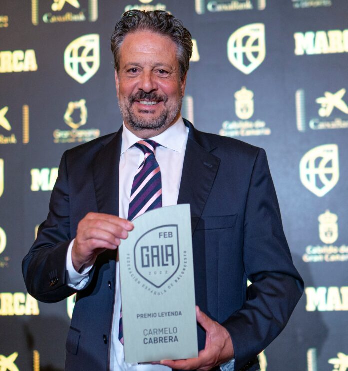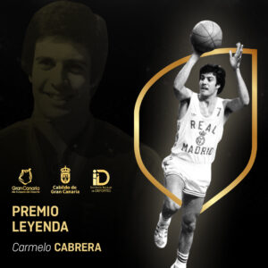 Carmelo Cabrera, El Globetrotter Blanco (Las Palmas de Gran Canaria, 6 de enero de 1950) puede presumir de ser el quinto jugador en la historia del baloncesto estatal con más títulos conseguidos, un total de 42, de haber sido internacional con el equipo nacional en 102 ocasiones, a las que hay que sumar otras 15 con la selección junior, de formar parte del quinteto de la selección de Europa en 1975, de conquistar con el Real Madrid dos Copas de Europa y tres subcampeonatos, diez Ligas Nacionales y un subcampeonato, siete Copas del Generalísimo, tres Copas Intercontinentales, siete ediciones del legendario Torneo de Navidad, un subcampeonato europeo con el equipo nacional en 1973 y un campeonato de Primera División ‘B’ con el CB Canarias entre otros logros, amén de su participación en el Mundial o en los Juegos Olímpicos de Münich. Y todo ellos sin citar sus récords personales.