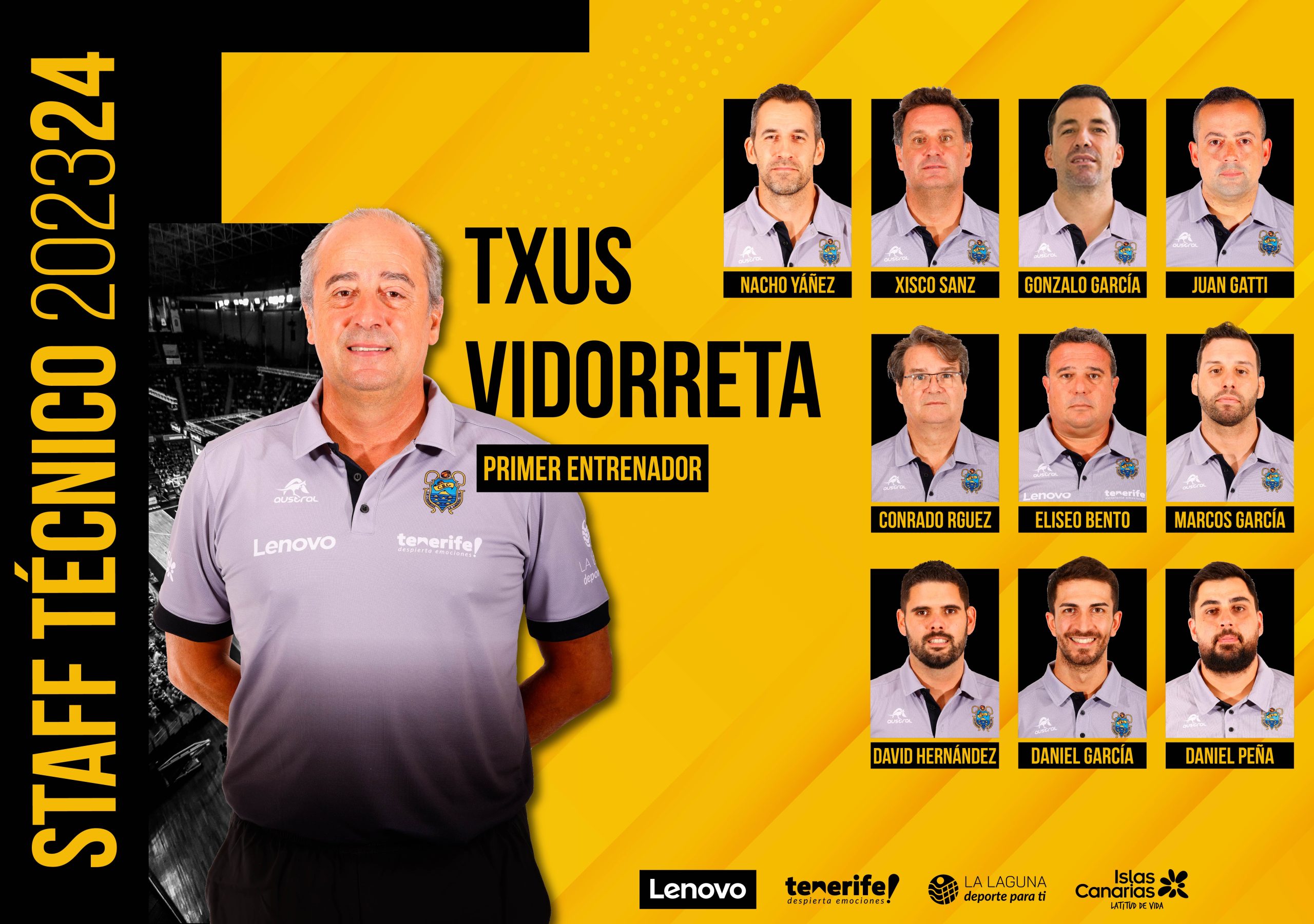 Txus Vidorreta, entrenador vasco del primer equipo del Club Baloncesto Canarias, Lenovo Tenerife, volverá a contar en su cada vez más amplio cuerpo técnico con Xisco Sanz como coordinador técnico y preparador físico. A esta temporada se le unen las nuevas incorporaciones de los técnicos foráneos Gonzalo García y Juan Gatti en calidad de entrenadores ayudantes, mismo cargo que seguirá ejerciendo el madrileño Nacho Yáñez. Con esta composición, se da la circunstancia de que el Canarias no tendrá un solo entrenador ayudante canario, a pesar de que este año serán tres y no dos como hasta ahora los que ejerzan esas funciones.