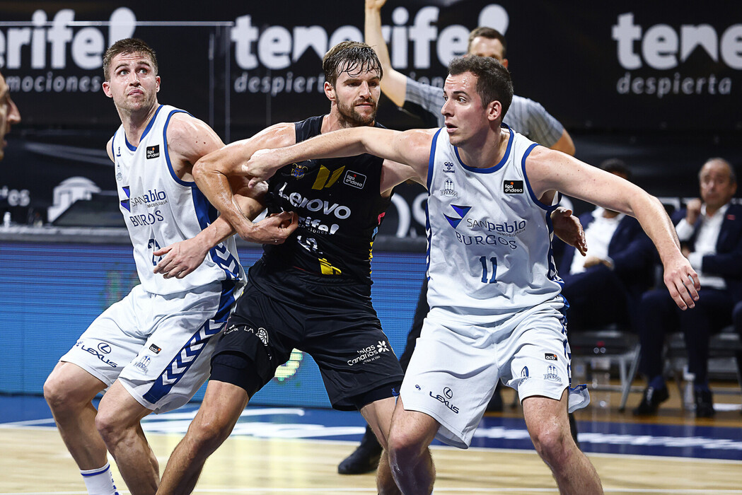 El baloncestista aurinegro pasó por la sala de prensa del Santiago Martín, para exponer su visión del primer partido, y primera victoria, del Lenovo Tenerife en la serie de cuartos de final. El canadiense aportó 10 puntos y 5 rebotes al triunfo aurinegro.