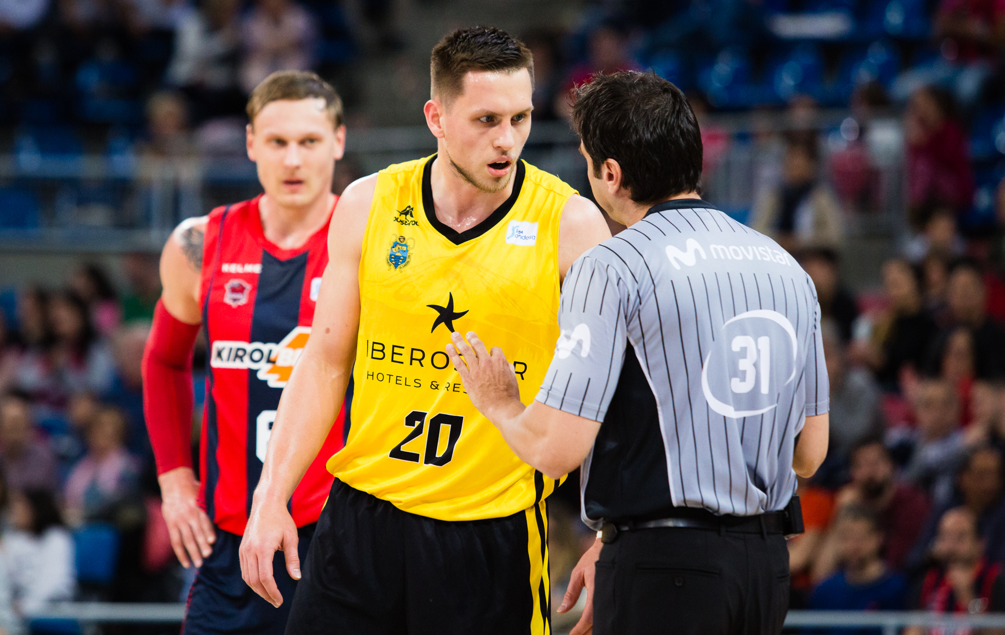 Árbitros: Carlos Peruga, Jorge Martínez Fernández y Andrés Fernández. Eliminaron por cinco faltas personales al jugador del Canarias Abromaitis (minuto 37), y señalaron falta técnica al entrenador visitante Katsikaris (minuto 26).
