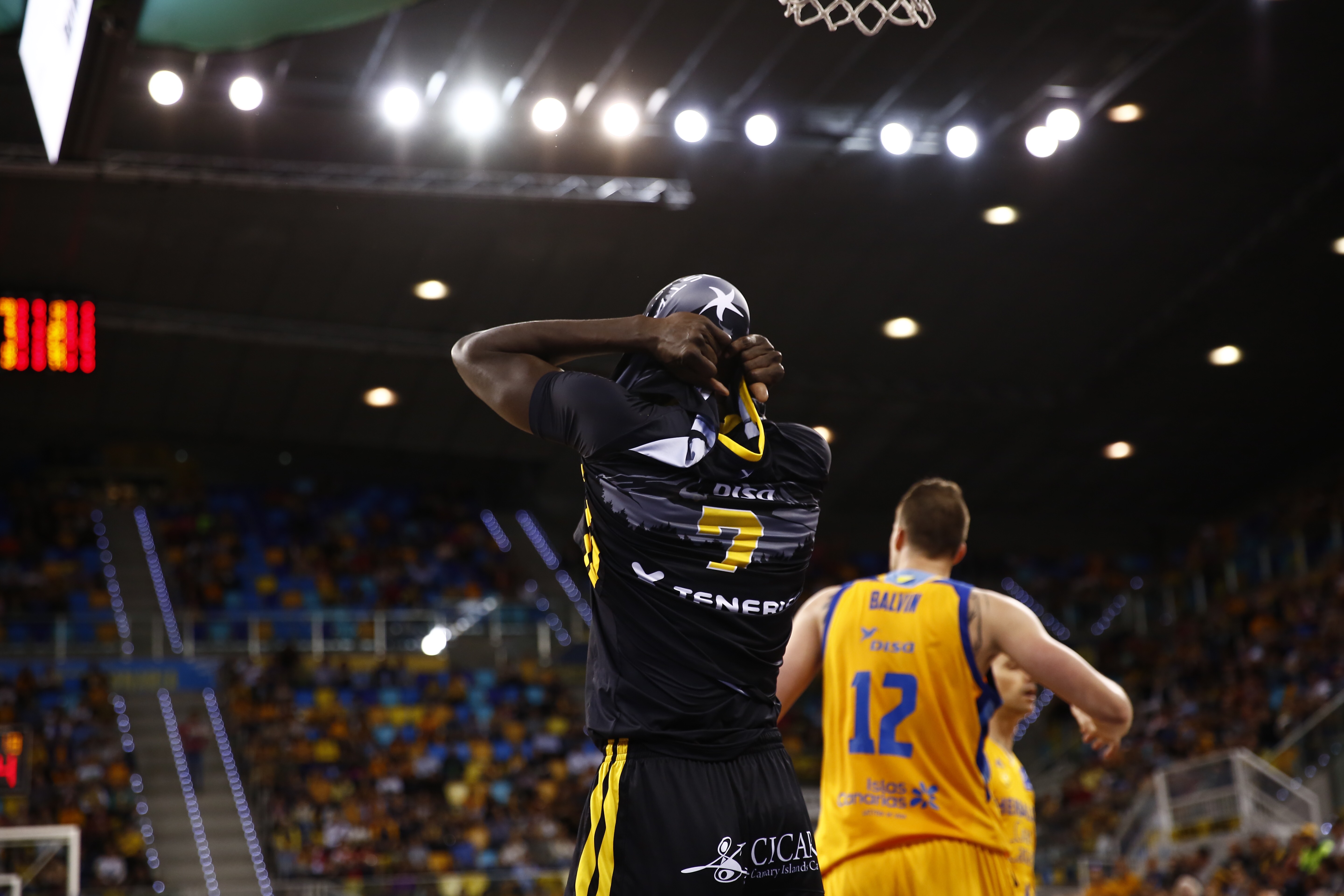 Katsikaris paró el partido y en la siguiente jugada una clara falta antideportiva de Rabaseda sobre Mateusz Ponitka y otro mate firmado por Fran Vázquez hicieron que el Canarias se fuese, nuevamente, de diez puntos en el videomarcador (21-31), para llegar al descanso con un equipo, el tinerfeño, que seguía haciendo mucho daño desde más allá del arco de tres puntos (29-39).