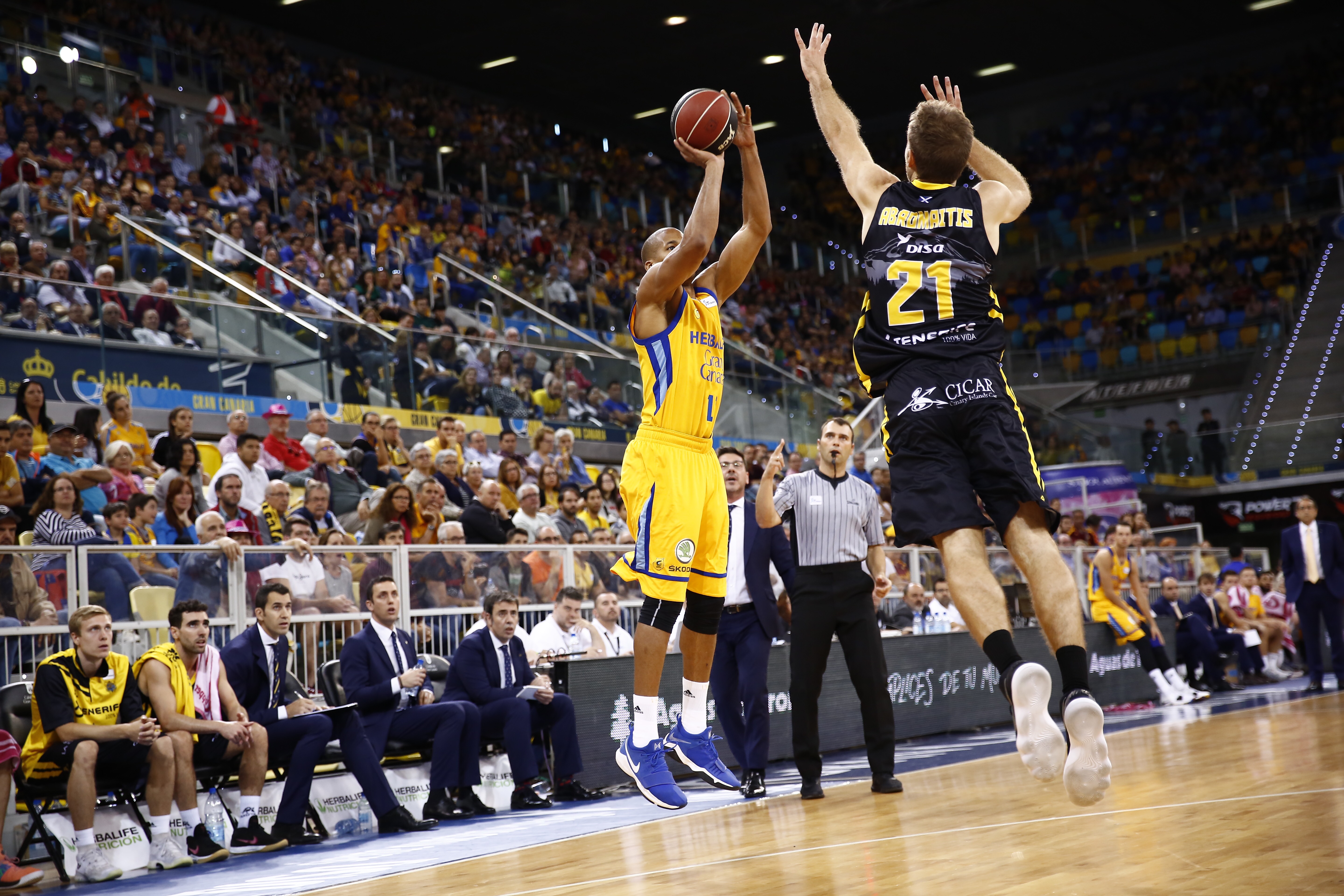 Luis Casimiro pidió tiempo muerto, pero el Canarias ya había puesto la directa y se iba diez puntos arriba (15-25), si bien Gran Canaria, con un parcial de 4-0 tras acciones de Oliver y Báez, trataba de parar el vendaval aurinegro (21-27).