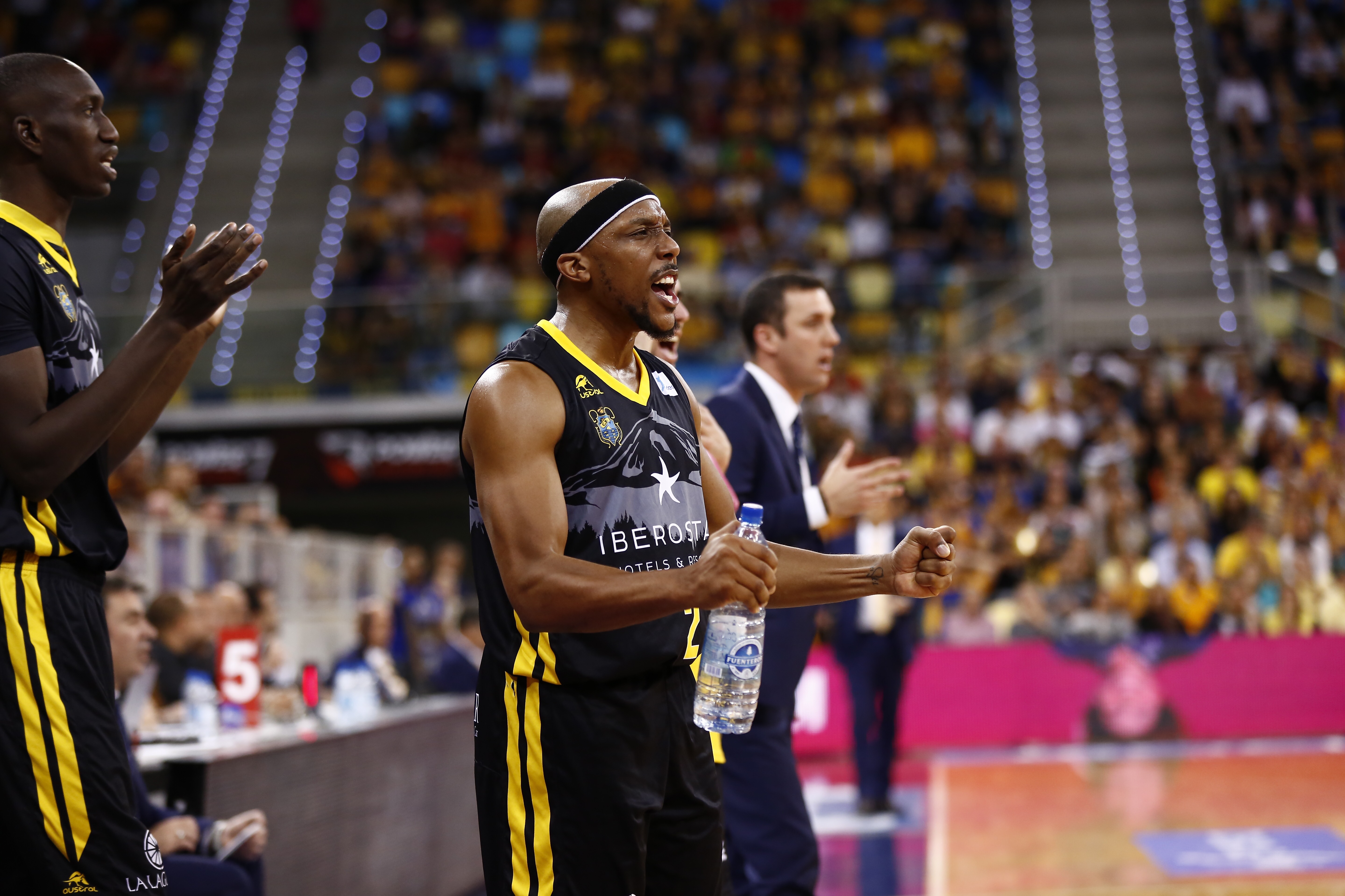 El inicio del segundo periodo fue muy positivo para los laguneros. El equipo amarillo y azul se estrellaba una y otra vez contra la intensa defensa aurinegra, que seguía ampliando la diferencia después de un espectacular mate, uno de los mejores de lo que llevamos de Liga Endesa, firmado por un rejuvenecido Fran Vázquez ante Pablo Aguilar, sumado a un triple posterior de un magnífico Tim Abromaitis (15-23).