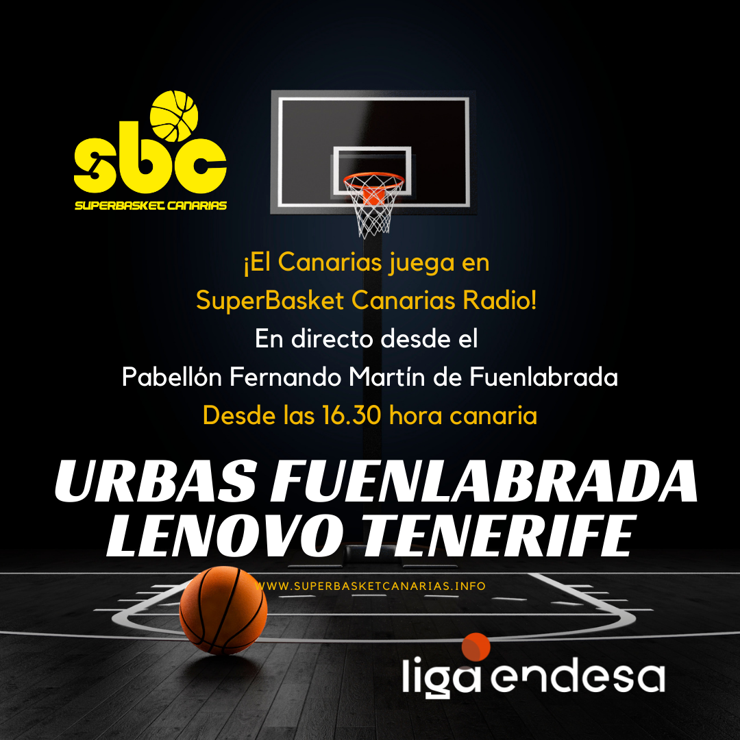 El Canarias juega en SuperBasket Canarias Radio. Transmisión en directo, a partir de las 16.30 hora canaria, del partido correspondiente a la decimocuarta jornada de la Liga Endesa entre Urbas Fuenlabrada y Lenovo Tenerife. Desde el Pabellón Fernando Martín y en la voz de José Luis Hernández, junto a todo el equipo de SuperBasket Canarias (@superbasket7).