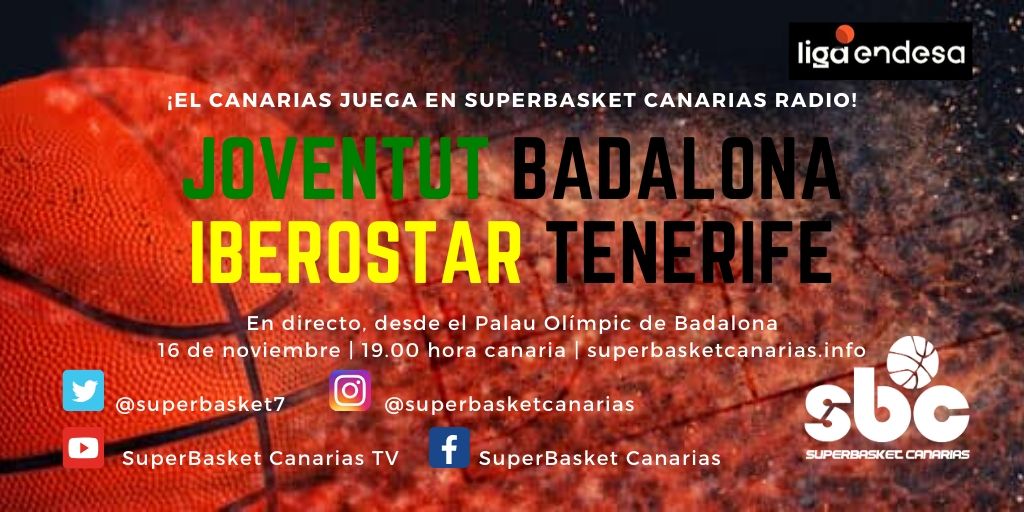El Canarias juega en SuperBasket Canarias Radio. Transmisión en directo, a partir de las 19.00 (hora canaria) del encuentro correspondiente a la Jornada 9 de la Liga Endesa entre Joventut de Badalona e Iberostar Tenerife.