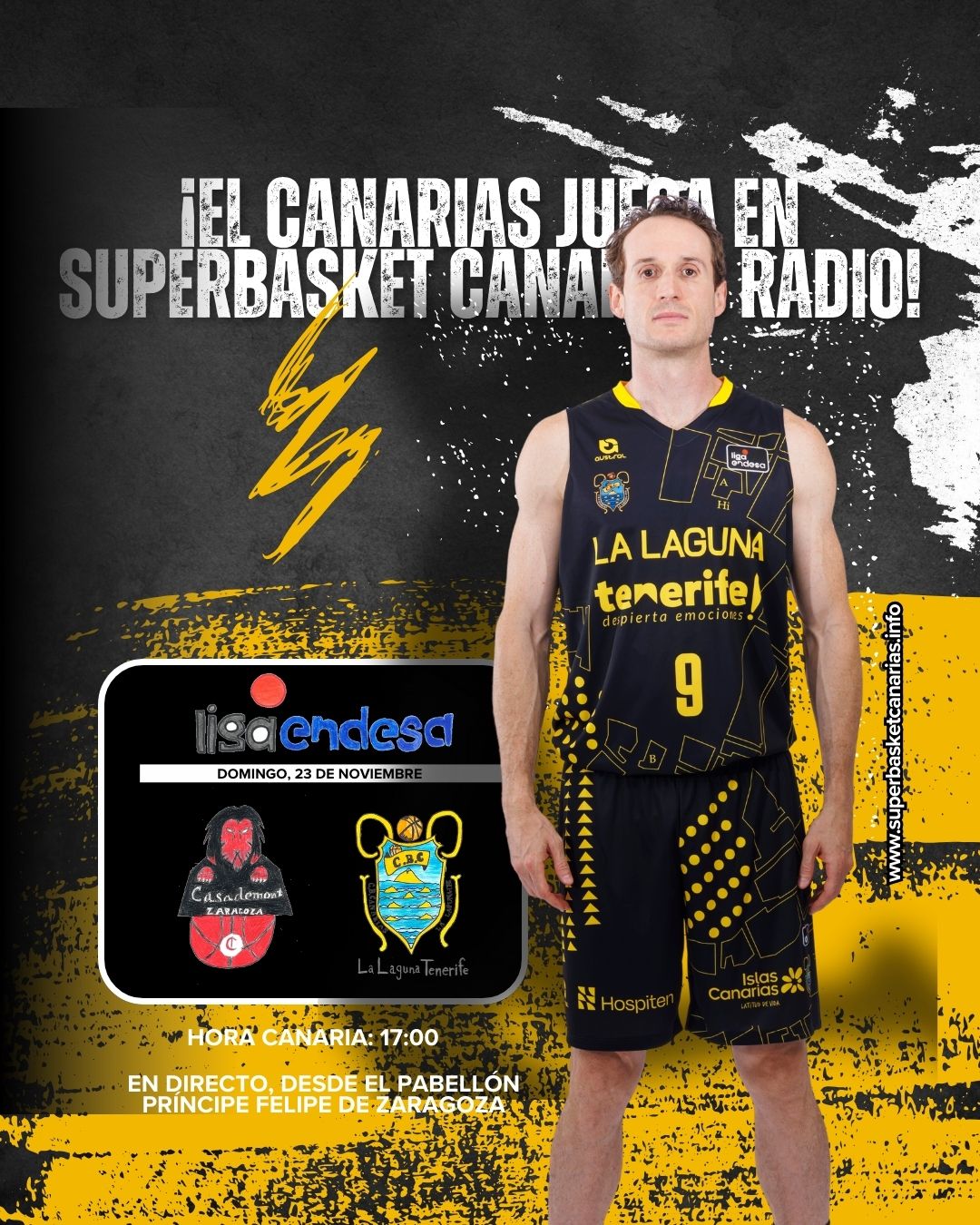 ¡El Canarias juega en SuperBasket Canarias Radio! No te pierdas ni un solo detalle del emocionante duelo entre Zaragoza y Canarias, correspondiente a la octava jornada de la Liga Endesa. A partir de las 17.45 hora canaria, disfruta de la narración en directo de la mano de José Luis Hernández, quien te llevará toda la emoción del partido minuto a minuto.