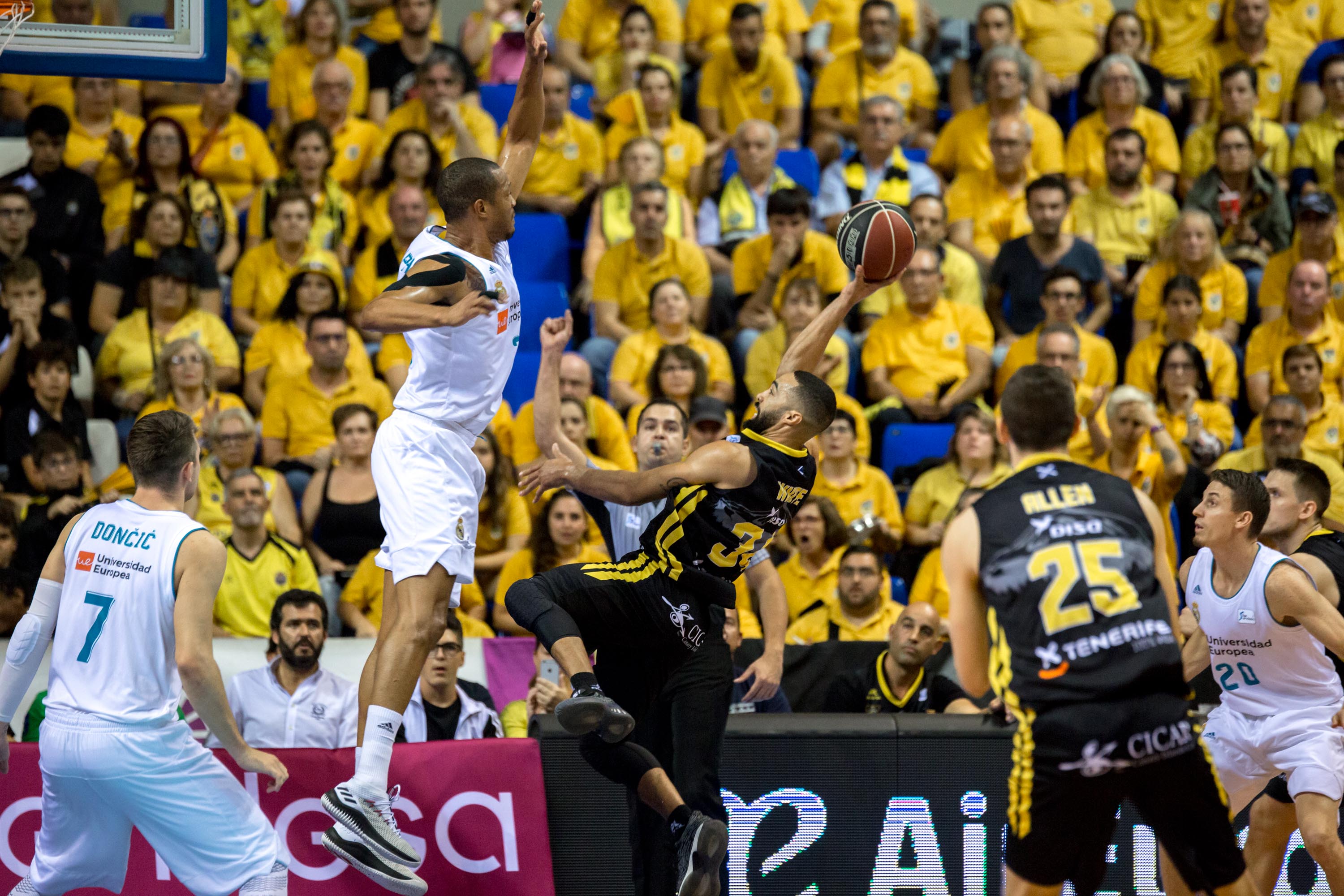 LA LAGUNA (TENERIFE) – El Canarias ha dado la cara en todo momento frente al todopoderoso Real Madrid, aunque no pudo evitar la derrota ante los capitalinos, que siguen comandando la clasificación de la Liga Endesa con siete victorias en otros tantos encuentros. El partido fue bonito, intenso, con mucho ritmo y con el marcador igualado la mayor parte del mismo, pero el acierto de Fabien Causeur, que apareció cuando su equipo más lo necesitaba, y el incansable, y efectivo, trabajo del veterano Felipe Reyes bajo canasta acabaron con las opciones canaristas, que falló demasiado cuando menos podía hacerlo.
