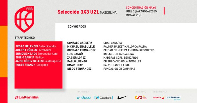 Fernández, escolta nacido en el año 2005, formará parte del grupo de ocho jugadores seleccionados para entrenar bajo las órdenes del técnico Pedro Meléndez. La cita se desarrollará en la localidad de Utebo, Zaragoza, del 19 al 22 de mayo, como parte de la preparación para los próximos compromisos internacionales del combinado nacional.