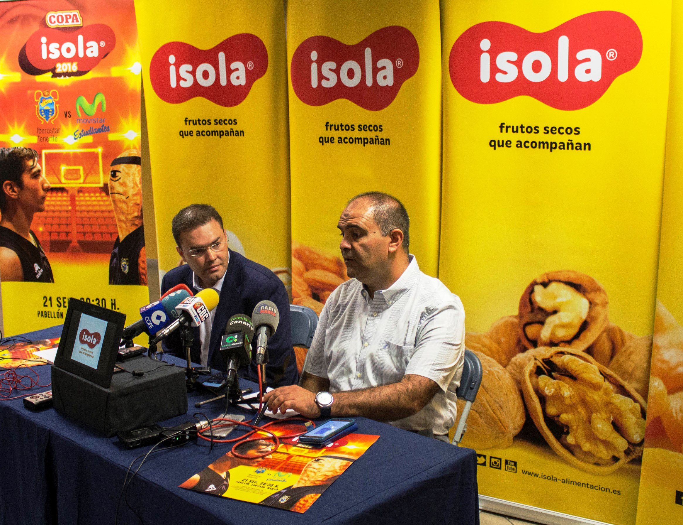 La Copa Isola 2016 fue presentada oficialmente ante los medios este jueves, en la zona VIP del Santiago Martín, en un acto que contó con la presencia de Aniano Cabrera, gerente y director deportivo del club de La Laguna, Marius Grigonis, jugador de la primera plantilla y David Pérez, director de Isola Frutos Secos.