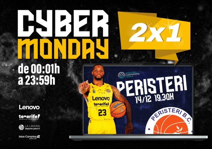 El Lenovo Tenerife ha activado para el día de hoy, lunes 28 de noviembre, una promoción de 2×1 para el partido contra el Peristeri Bwin griego del próximo 14 de diciembre (pabellón de deportes de Tenerife Santiago Martín, 19.30 horas), correspondiente a la jornada número 5 de la Liga de Campeones de Baloncesto (BCL).