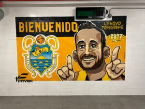 El Canarias ya tiene su vestuario personalizado en el Pabellón Municipal de Palencia, donde mañana se enfrentará al Zunder Palencia. Los aurinegros disfrutarán de la creativa iniciativa que, desde la primera jornada de la presente campaña, está llevando a cabo el club morado en el vestuario visitante y que está enamorando a todos y cada uno de sus rivales. La entidad baloncestista castellana, de la mano de ‘SeteScritor’, prepara cada jornada como local una obra de arte para recibir al equipo contrario, y en esta ocasión le ha tocado al club de La Laguna.