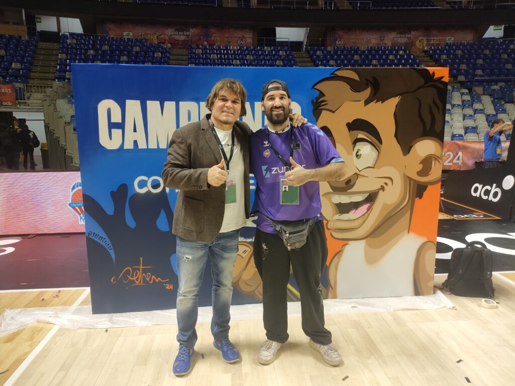 Tanto ha trascendido su trabajo creativo, que la propia Asociación de Clubes de Baloncesto (ACB) lo reclutó para estar presente en la pasada Copa del Rey celebrada en Málaga, mostrando su trabajo en la Fan Zone Movistar y realizando también el mural de los campeones de la Copa, el Real Madrid. Ahora le ha tocado darle al amarillo y negro. Magnífico.