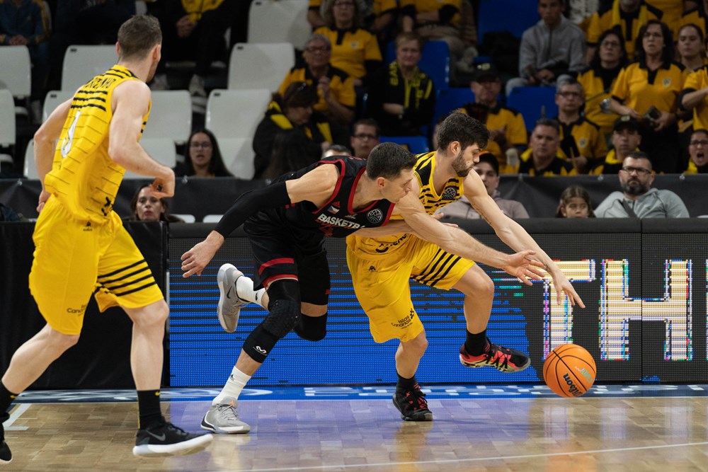 En un partido claramente condicionado por la actuación arbitral, descalificaron al playmaker aurinegro Marcelinho Huertas a casi siete minutos para el final del partido, el conjunto de Aguere, que había ido de menos a más, sufrió en la pintura, en la lucha por el rebote y acabó perdiendo ante un rival que supo aprovechar las circunstancias del encuentro y también jugar bien sus cartas para llevarse la victoria hasta el viejo continente.