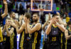 González, con el dorsal nº7, celebra el ascenso canarista a la LEB Oro