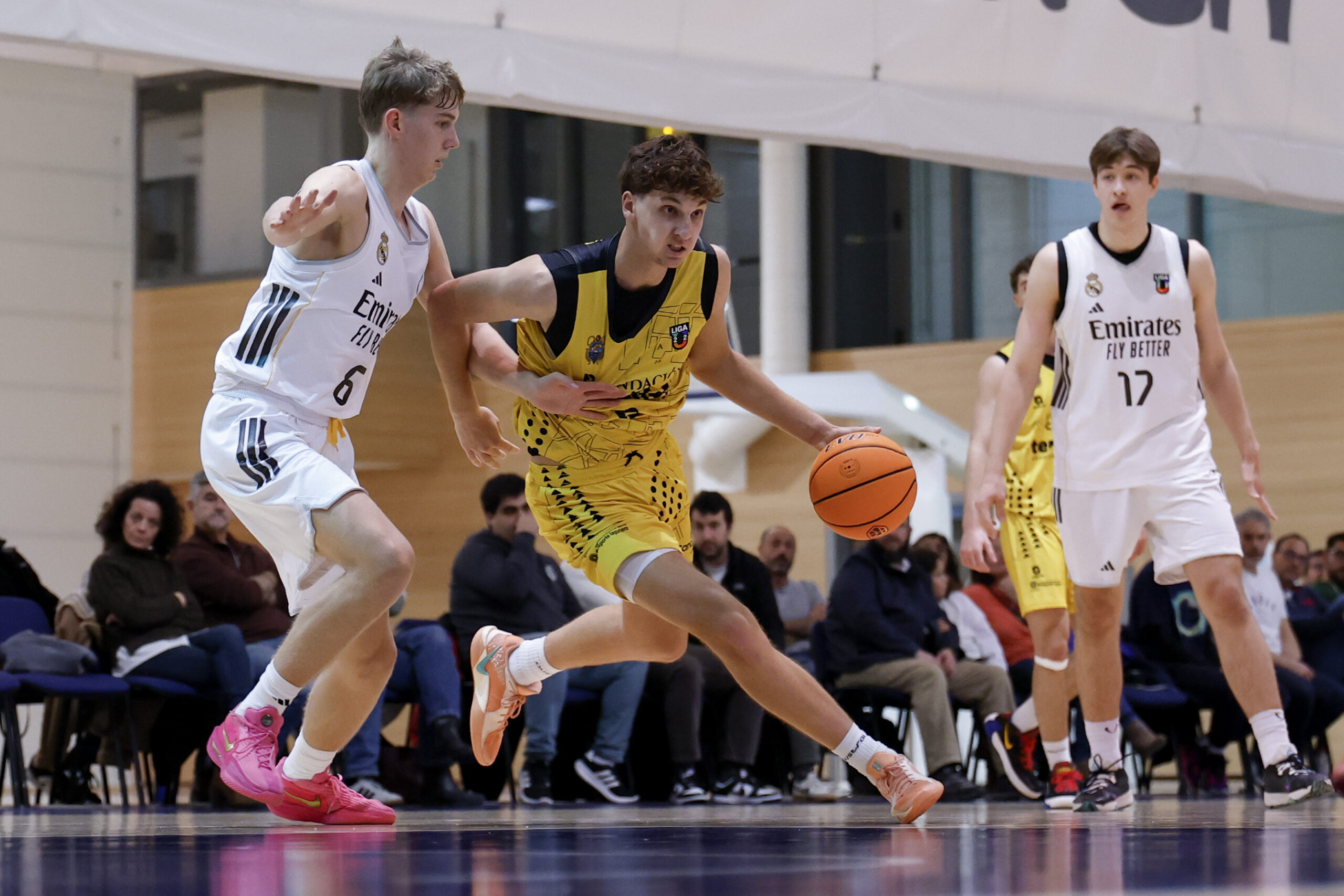 El bloque madridista combina talento, físico y profundidad de banquillo. Entre sus jóvenes promesas se encuentran el escolta serbio de 2008 Andrej Bjelic, MVP del último Torneo de Hospitalet; el ruso Ilia Frolov, MVP del Torneo U16 Villa de La Orotava hace dos temporadas; y el turco Ömer Kutluay. Además, el equipo cuenta con el alemán Fabian Kayser, el letón Gunars Grinvalds y los interiores africanos Ousmane Diarra (Malí) y Serigne Sarr (Senegal), figuras a tener en cuenta en el duelo de este viernes entre aurinegros y blancos.