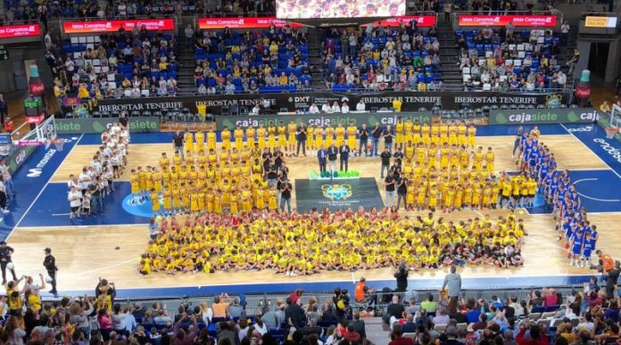 Desde los más pequeños hasta los jugadores de categría sénior, participaron de esta fiesta de presentación oficial. Los conjuntos dirigidos por la Fundación Club Baloncesto Canarias estuvieron acompañados por la Escuelita, que trabaja semanalmente en el pabellón cubierto del colegio Buen Consejo, así como las existentes en el lagunero barrio de Las Chumberas, La Pureza, Decroly, Rodríguez Campos, Santa Úrsula e Icod.