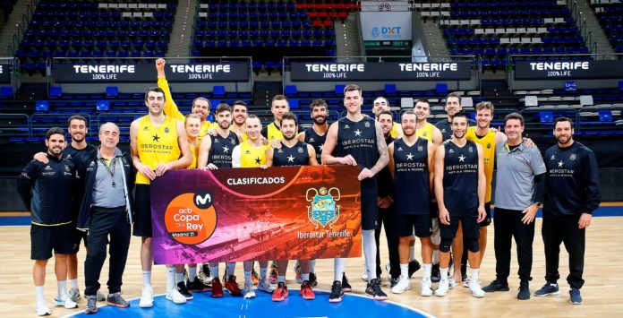 No podía ser de otra manera. La clasificación del primer equipo del Club Baloncesto Canarias, Iberostar Tenerife, para la próxima edición de la Copa del Rey Madrid’21, fue celebrada por todos los integrantes de la plantilla aurinegra, cuerpo técnico incluido, sobre el parqué del Santiago Martín. Los tinerfeños, con una increíble y magistral temporada tanto en la Liga Endesa como en la Basketball Champions League, cantaron el riqui raca más emotivo. ¡Emocionante!