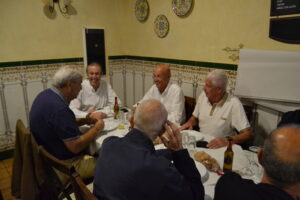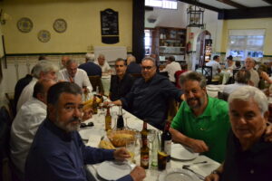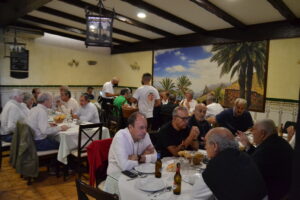 La comida, que se realizó en el Restaurante Casa Tomás, en El Portezuelo, comenzó tras la llegada en guagua de los veteranos grancanarios que se habían desplazado hasta Tenerife, desde la isla hermana, a primera hora de la mañana. Los claretianos llegaron encabezados por el presidente de su Asociación, Santiago Rodríguez Galván, además de Juan Antonio Henríquez, secretario de la misma.
