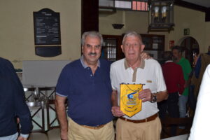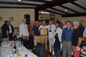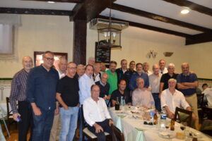 Por su puesto, un enorme número de veteranos, tal y como pueden observar en la galería fotográfica, compartieron el excelente menú. Para comenzar entrantes variados, seguidos de la tradicionales papas con costillas y bacalao encebollado, ambos regados con vino del país, amén de los postres de rigor. Tras la finalización de la comida, momento para las palabras de hermanamiento pronunciadas por Santiago Rodríguez dirigidas a quienes fueron rivales en la pista y son amigos fuera de ella.  Posteriormente, el lagunero Carmelo Cruz, jugador en activo más longevo con 77 años, recibió un banderín como muestra de cariño y amistad.