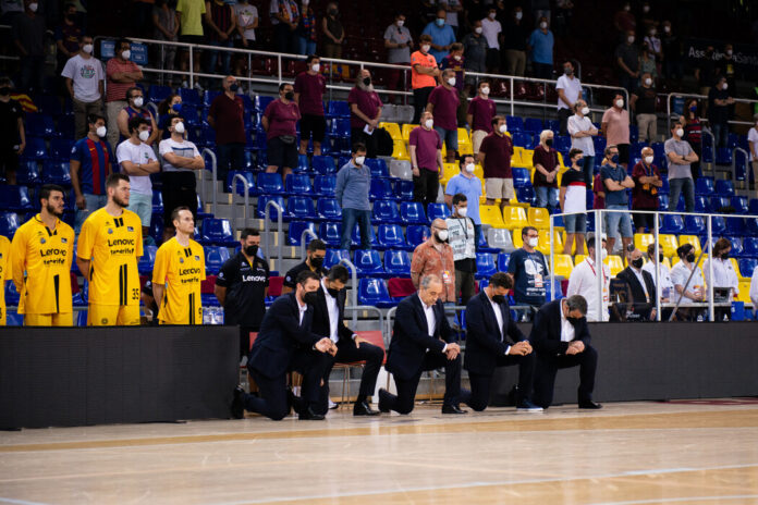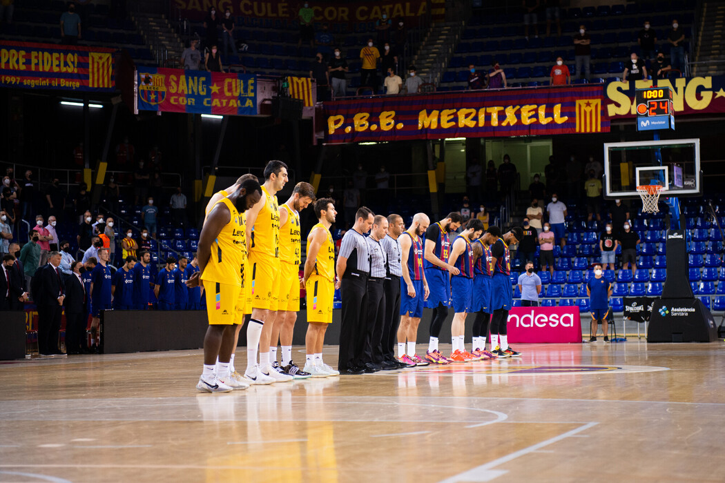 Con el Palau Blaugrana puesto en pie en señal de dolor y respeto, y al unísono sonando por la megafonía ‘El cant dels ocells’, El canto de los pájaros, del maestro catalán Pau Casals, ambos equipos especialmente el lagunero, mostraron sus condolencias para con la familia de la niña, con los técnicos arrodillados sobre el parqué mientras las dos quintetos y el trío arbitral formaban en el centro de la cancha. El resto de baloncestistas hacían lo propio en sus lugares correspondientes en ambos banquillos. Un comienzo muy emotivo y sobrecogedor que finalizó con el sentido recuerdo de Paul Gasol a la familia de Olivia, especialmente a su madre Beatriz. Sobrecogedor.