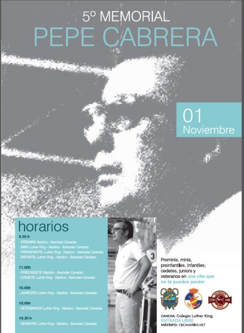 LA LAGUNA – Club Baloncesto Canarias y Colegio Luther King, ambos de La Laguna, y Real Club Náutico de Santa Cruz de Tenerife, rendirán tributo a la figura de Pepe Cabrera el próximo jueves día 1 de noviembre, con motivo de la celebración del V Memorial que lleva su nombre. Las instalaciones del colegio lagunero, durante muchas temporadas sede del equipo aurinegro, serán el escenario de una jornada maratoniana de partidos, con entrada libre, en la que los equipos de categoría de base y veteranos de los tres clubes tinerfeños se enfrentarán entre sí.