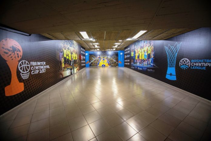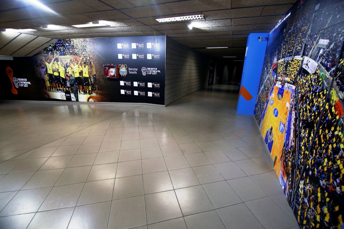 El pasillo central que lleva al parqué del Santiago Martín presenta una nueva cara. Ahora en lugar de las paredes vacías de antes los jugadores encontrarán un espacio mucho más alegre y simbólico, con grandes fotografías de las dos plantillas que consiguieron en este año 2017 al que ya le quedan pocos día de vida, la Copa Intercontinental así como el entorchado de ganadores de la BCL. Amén de las citadas fotografías, símbolos más institucionales como el escudo del Club Baloncesto Canarias, el logo de la Copa Intercontinental así como de la Basketball Champions League aparecen majestuosos en la nueva imagen del nuevo túnel, mucho más moderno y de acuerdo con la temática baloncestista del escenario.