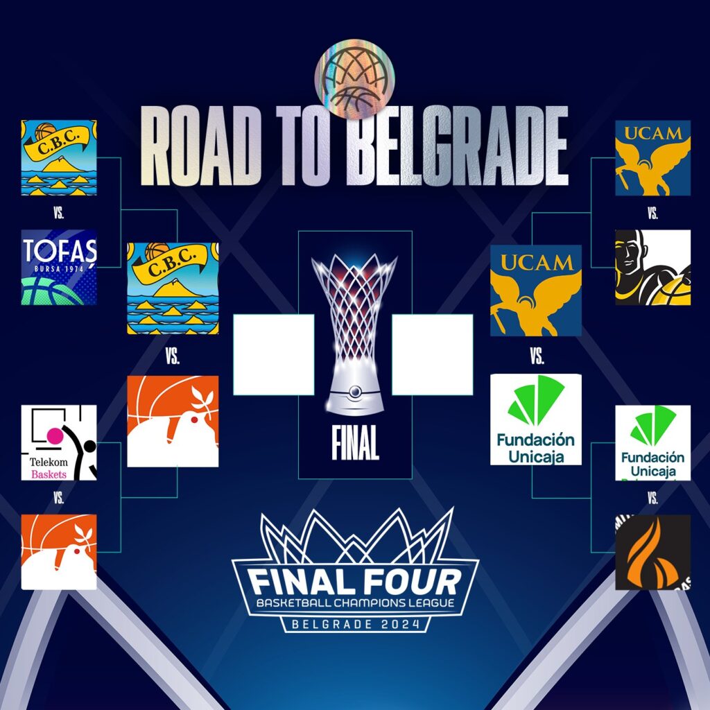 Tras quedar definido el cuadro final de la Final Four de Belgrado, la Basketball Champions League confirmaba los horarios de la cita baloncestística. La pelota comenzará a botar el 26 de abril, día de las semifinales, con el Canarias ante el Peristeri, partido programado para las 17.00 (hora canaria) en el Štark Arena. La segunda semifinal, protagonizada por los también ACB Unicaja y UCAM Murcia, cerrará la primera jornada a partir de las 21.00 horas, siempre en horario insular canario.