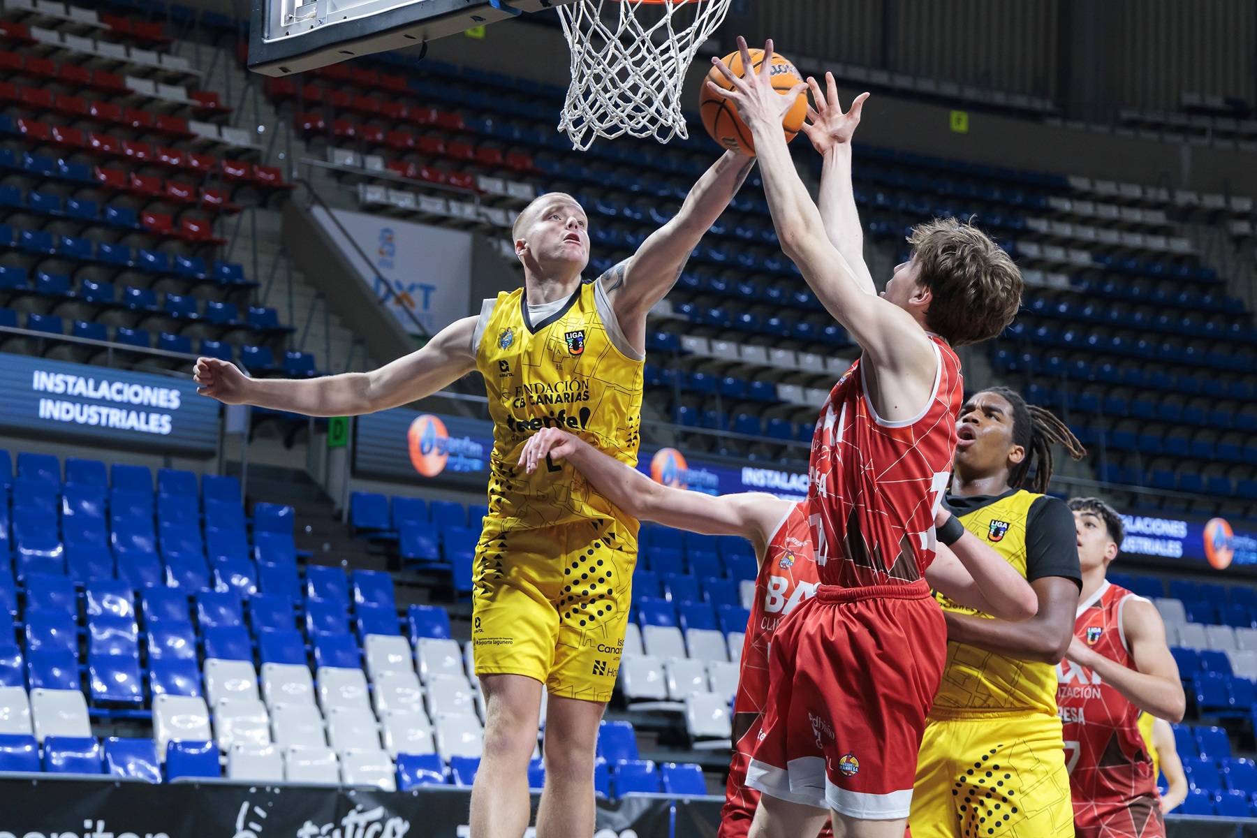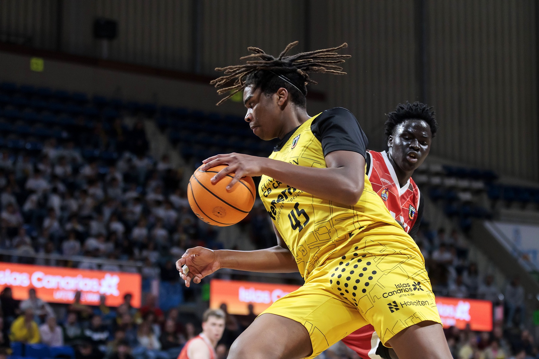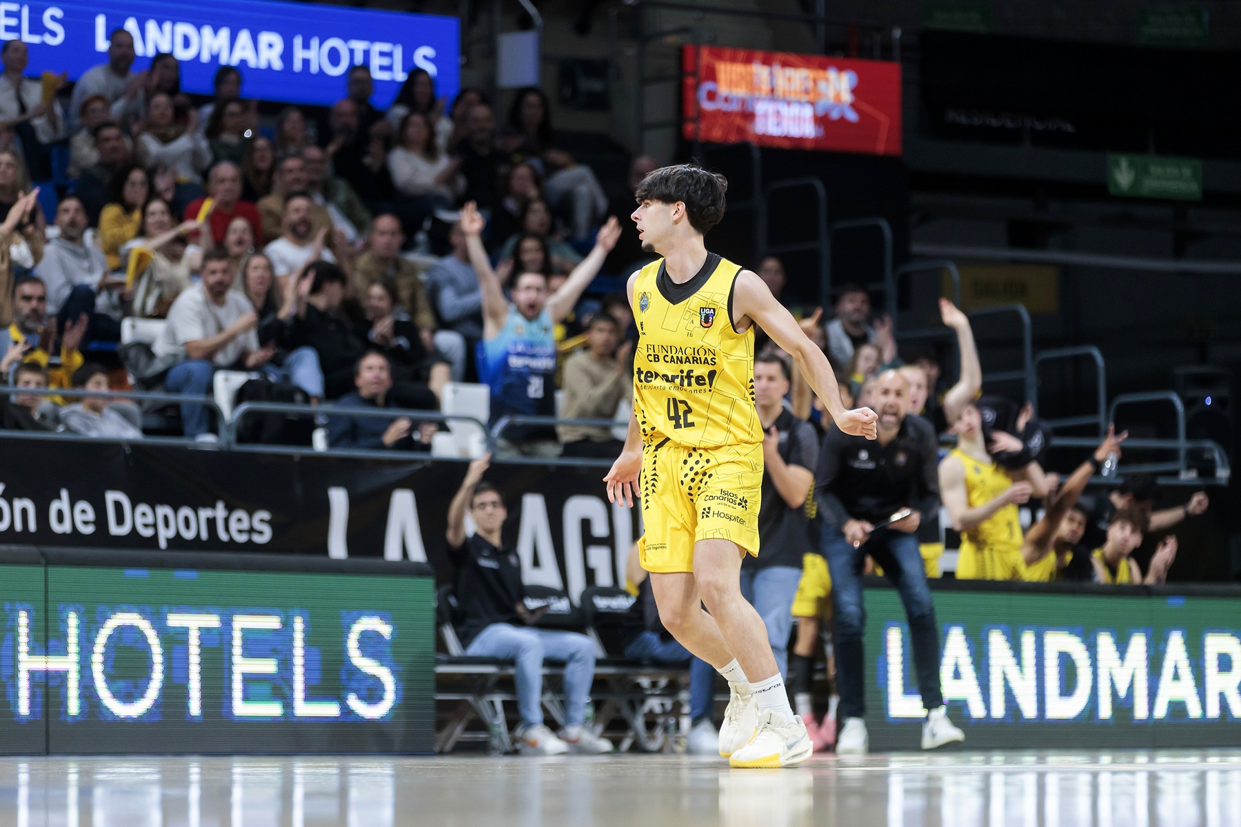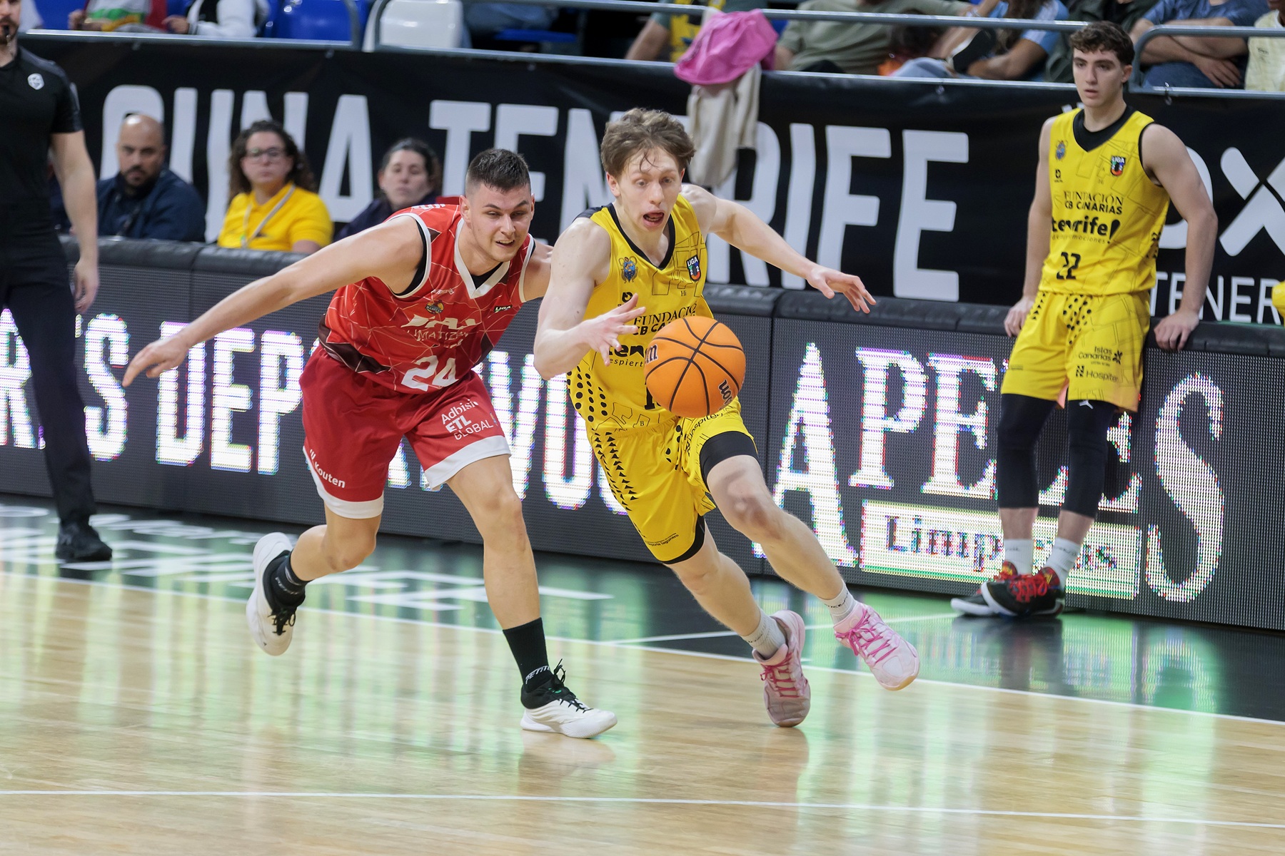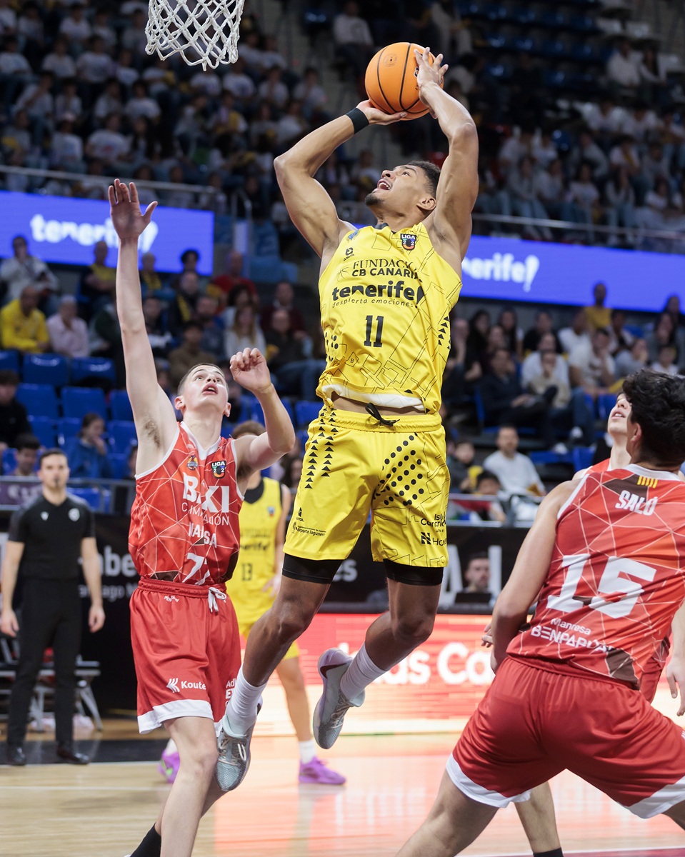 El BAXI Manresa logró sostener su ventaja durante varios minutos y llegó a colocarse con un 16-24, pero el encuentro comenzó a cambiar cuando el conjunto isleño elevó su intensidad defensiva. A partir de ahí, el partido dio un giro claro. La segunda unidad aurinegra tuvo mucho que ver en ese cambio de dinámica. Los minutos de los júniors Prekevicius, Texeira y Pérez aportaron energía y equilibrio a un equipo que empezó a dominar el ritmo del encuentro. Entre el final del primer cuarto y el desarrollo del segundo, el Fundación CB Canarias firmó un parcial contundente de 27-2 que dejó muy tocado a su rival.