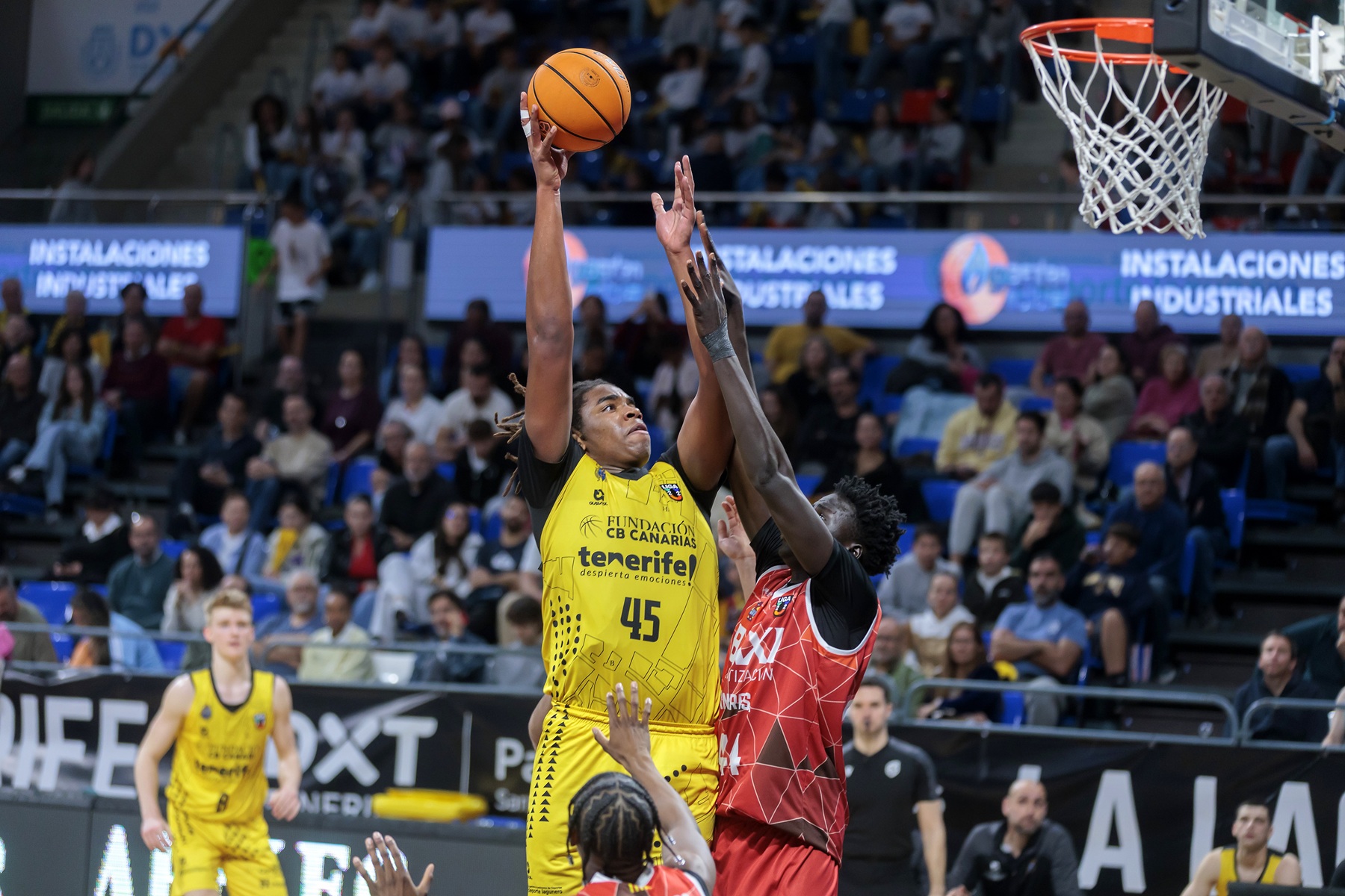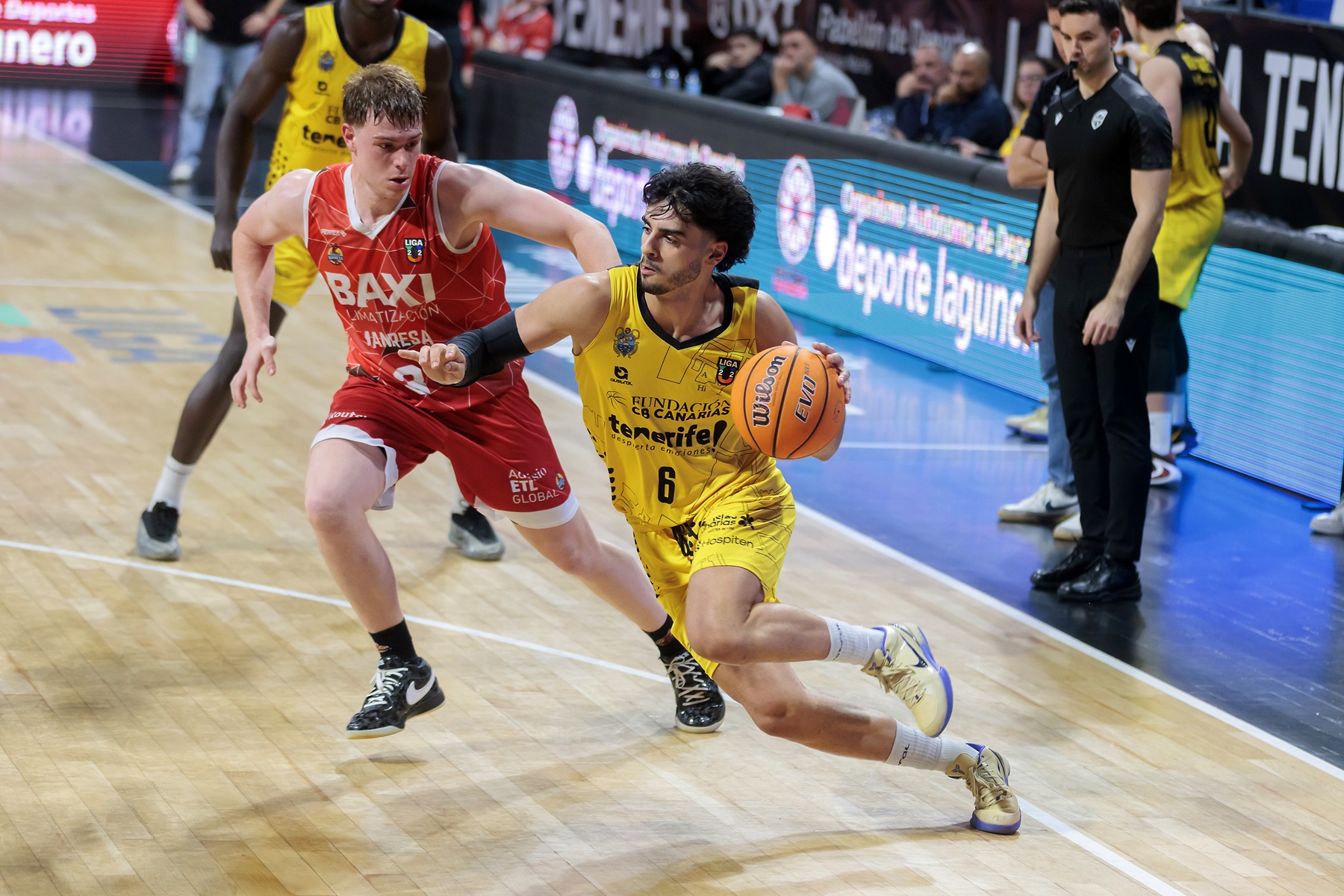 El duelo no comenzó con buenas sensaciones para los tinerfeños. El conjunto del Bages arrancó más entonado, especialmente desde la línea de tres, con un 3 de 5 inicial, además de mostrarse muy activo en el rebote ofensivo. Ese acierto permitió a los visitantes firmar un 0-9 de salida y llevar la iniciativa en los primeros compases del choque. El Canarias tuvo que reaccionar desde atrás y lo hizo apoyándose en su juego interior. Las conexiones con David Acosta y Mohamed Sangaré, junto al talento de Dylan Bordón para atacar el aro, ayudaron a los locales a mantenerse cerca en el marcador. Un triple de Rafa Rodríguez dejó el 9-12 y permitió a los aurinegros mantenerse dentro del partido mientras buscaban asentarse.