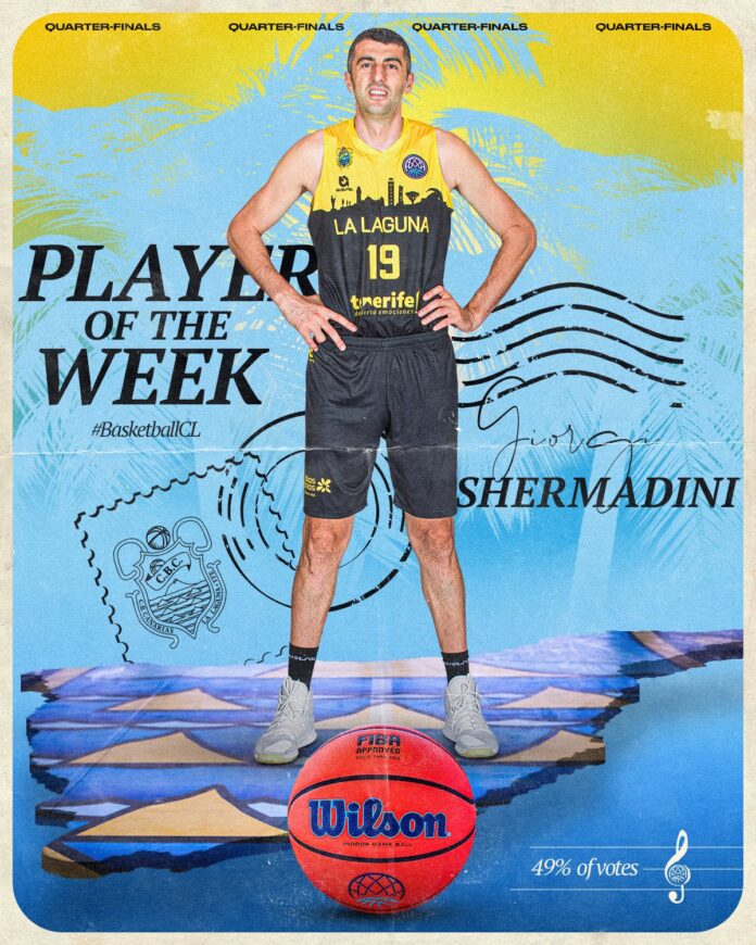 El pívot georgiano de La Laguna Tenerife Gio Shermadini ha sido reconocido como el Jugador de la Semana en la Basketball Champions League (BCL) tras una destacada actuación que le valió el 49% de los votos en línea, superando a otras figuras del torneo.