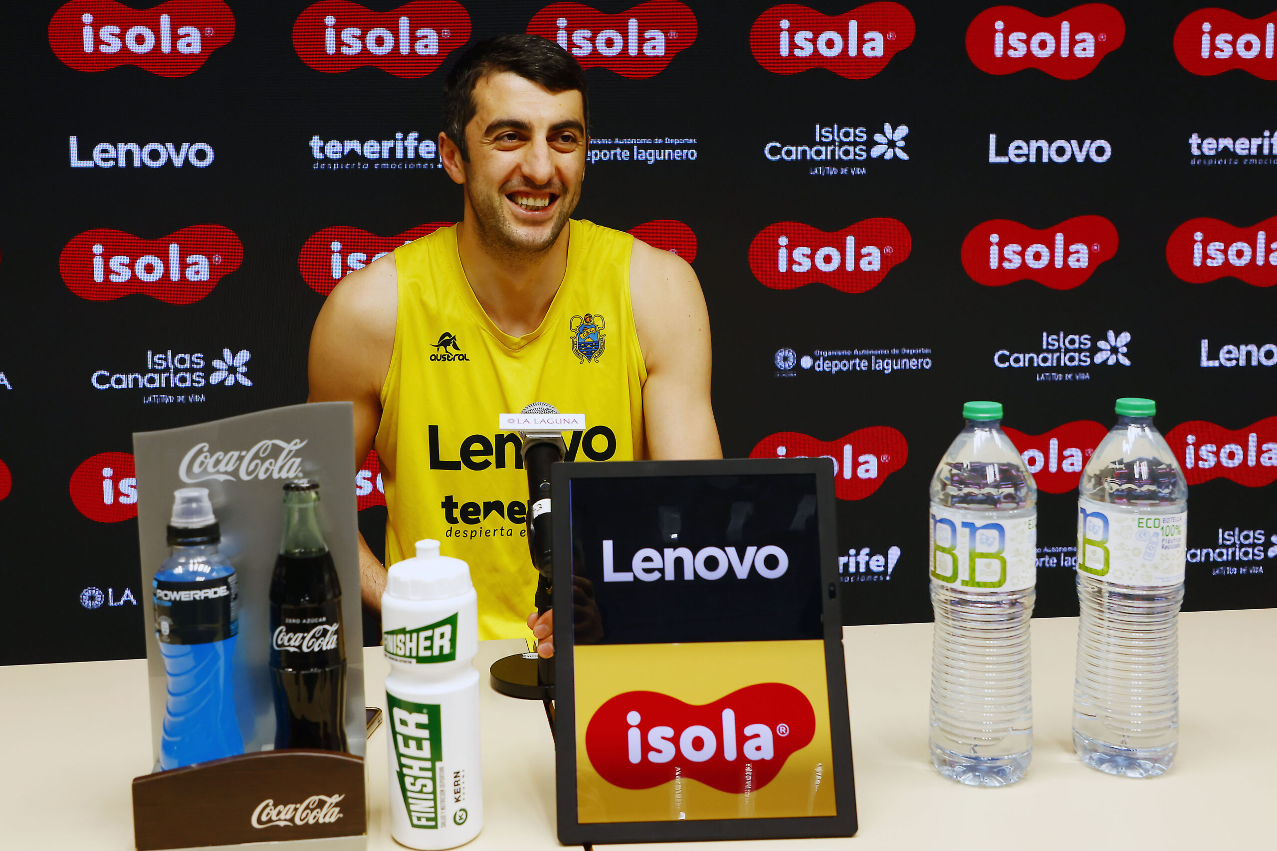 El pívot internacional del Canarias ha comparecido en la sala de prensa del Santiago Martín, con motivo de la visita de los aurinegros a la Ciudad Condal para enfrentarse al líder FC Barcelona (domingo, 17.30 horas SuperBasket Canarias Radio en directo).