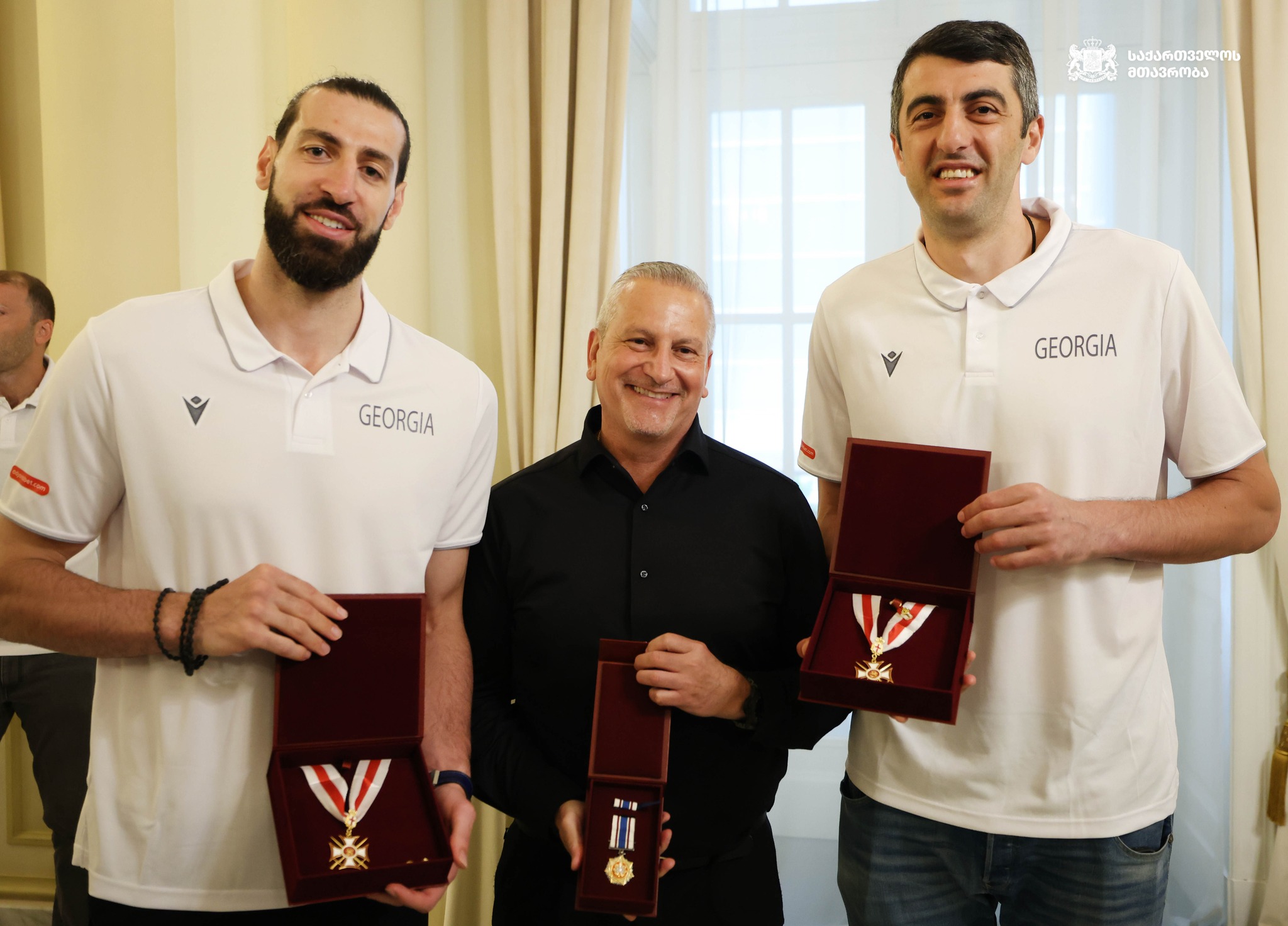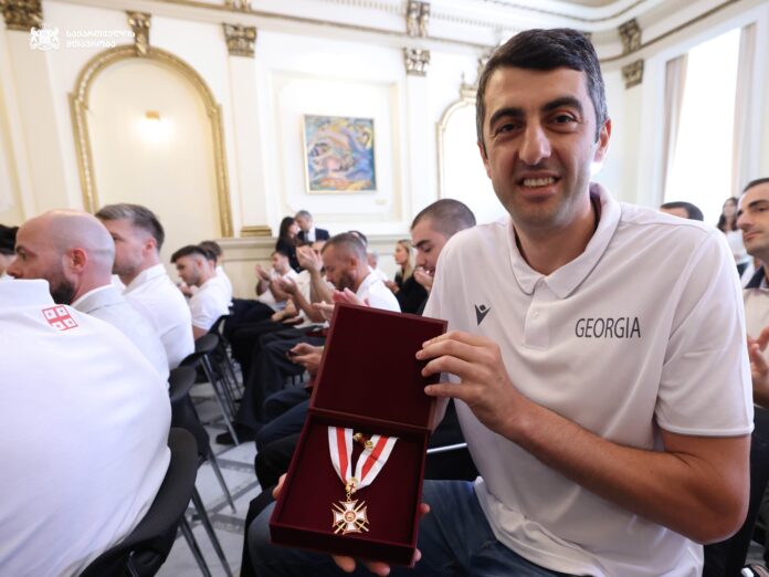 La ceremonia tuvo su momento más destacado con la entrega de la Orden de la Victoria de San Jorge al baloncestista aurinegro Gio Shermadini, así como al blaugrana Tornike Shengelia, en reconocimiento a su contribución decisiva en los recientes triunfos internacionales. Además, el presidente Kavelashvili otorgó medallas de honor a los demás miembros de la selección, al cuerpo técnico y a los directivos de la Federación Nacional de Baloncesto, incluidos su presidente Viktor Sanikidze y los vicepresidentes Vladimir Boisa, Nikoloz Tskitishvili y Davit Lavaridze, así como al secretario general Lasha Gamkrelidze.