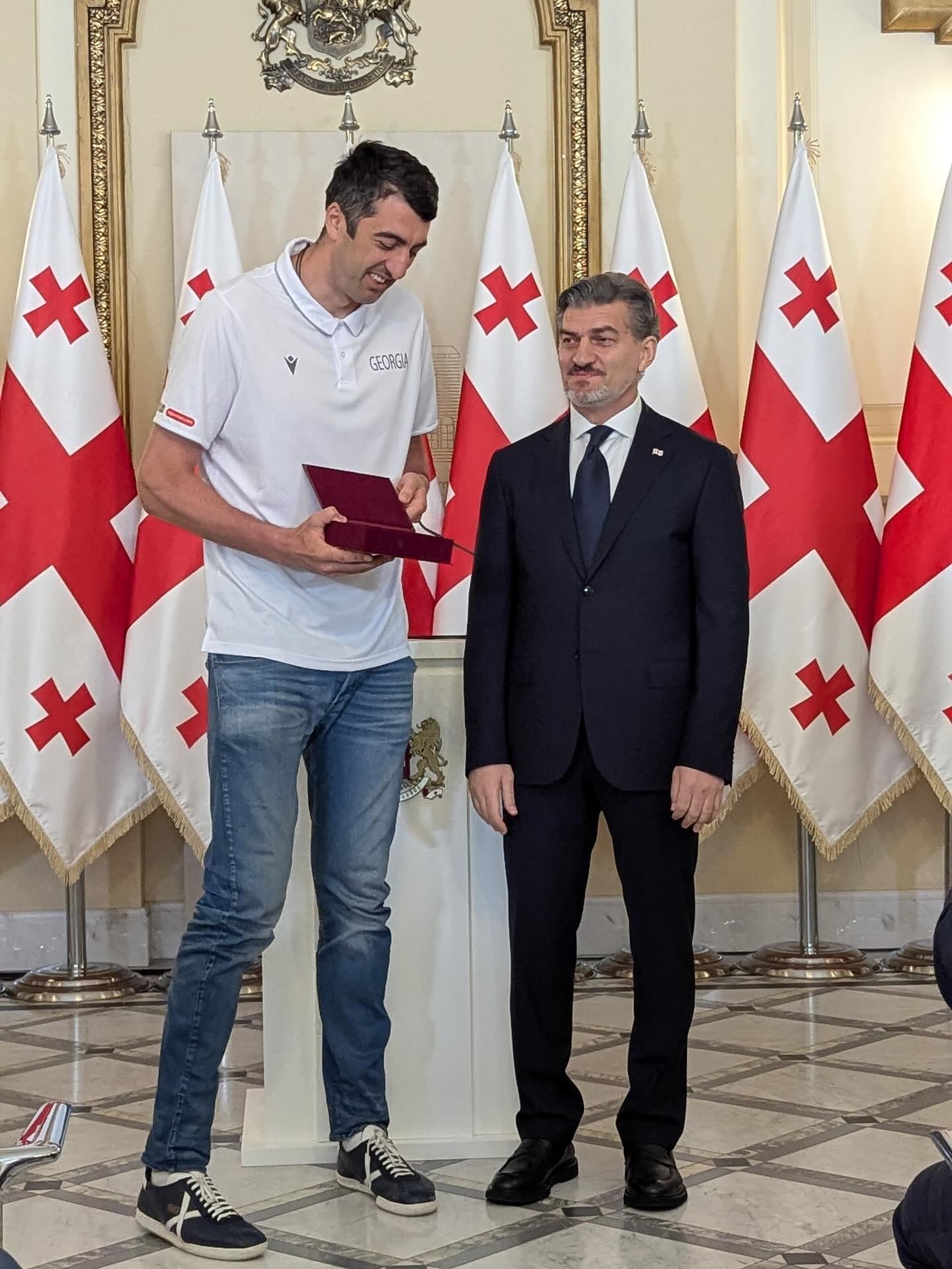 En una ceremonia celebrada en el Palacio Presidencial ubicado en la capital de Georgia, Tiflis, el presidente Mikheil Kavelashvili entregó los premios estatales a los miembros de la selección nacional de baloncesto de Georgia, en reconocimiento a su destacada trayectoria y a las recientes victorias que han situado al país ni Continental en el escenario internacional.
