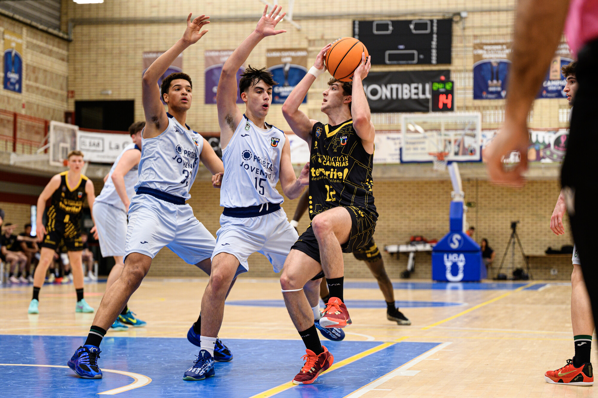 El segundo equipo del CB Canarias, Fundación CB Canarias, dio un paso de gigante en sus aspiraciones dentro de la Liga U tras imponerse a domicilio al Joventut Badalona en el pabellón Joan Busquets por 64-74, en un encuentro correspondiente a la penúltima jornada de la segunda fase. El conjunto aurinegro, que venía de medirse al FC Barcelona menos de 24 horas antes y ante el que cayó en el último minuto, firmó un triunfo que le mantiene seguir con opciones de acceder de forma directa a la Final a Seis y, como mínimo, le garantiza su presencia en el play-in.