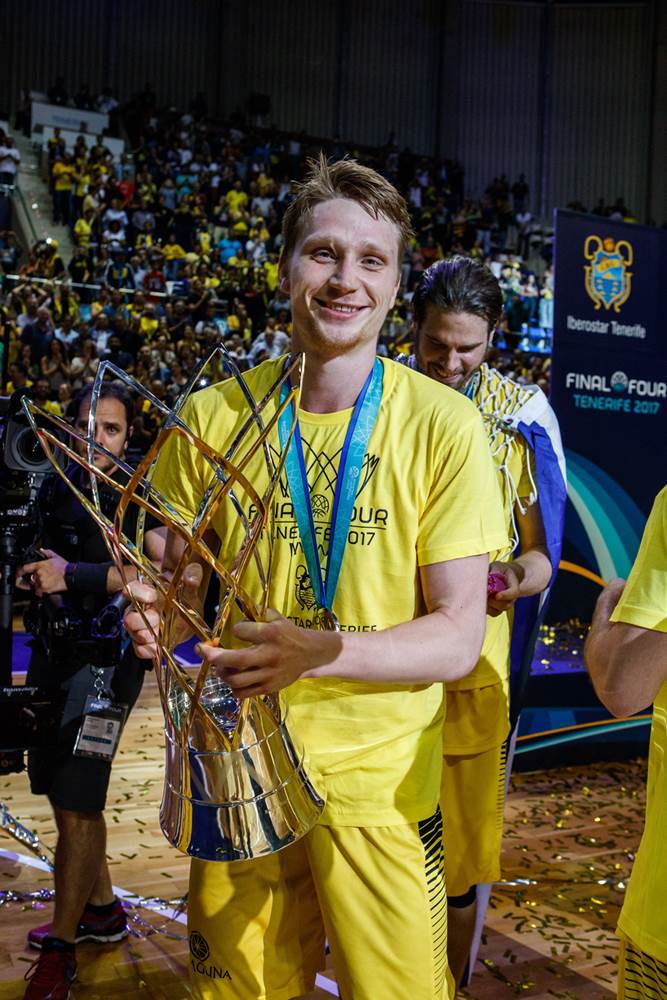 El joven jugador lituano fue determinante para que el Canarias lograra el entorchado en el que es “el partido más importante de mi carrera”, tal y como dijo en la zona mixta.