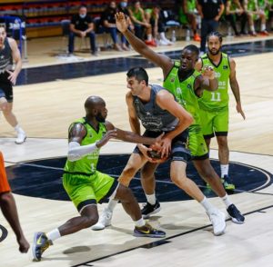El paso por vestuarios dio paso a un intenso tercer parcial, en el que se apretaron las defensas y solo Shermadini con su capacidad intimidadora socavaba la fortaleza de los locales. Emegano sostenía a los suyos en un parcial prácticamente espejo, que dejaba todo por resolver para el último cuarto: 65-65.