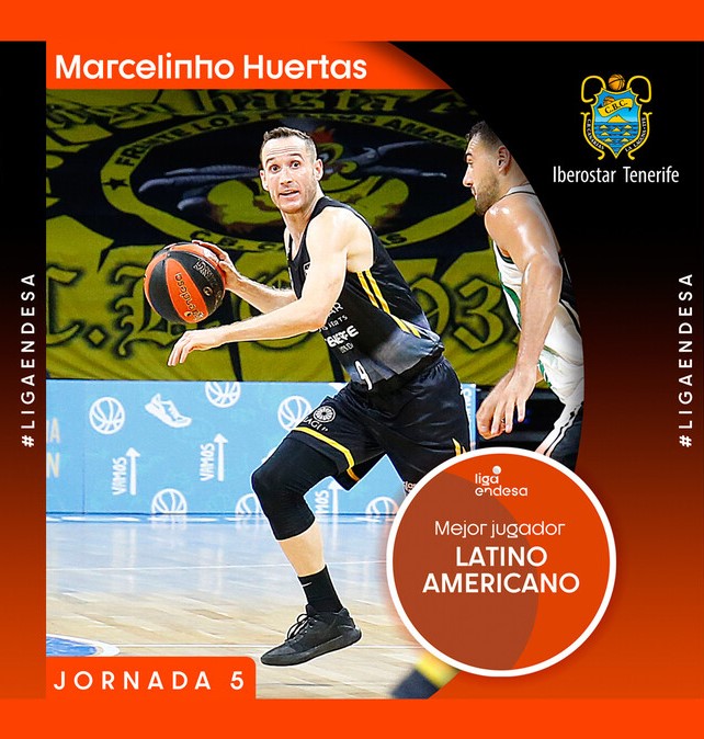 Noelia Ortmann (Comunicación Liga Nacional de Básquetbol – Argentina), Jorge Herrera (Cancha Latina y MundoBSKT – México), Fernando Martínez Larrosa (De lado a lado – Uruguay), y Álvaro Blanco (Agencia EFE – Miami) han elegido con sus votos al base del Iberostar Tenerife. En un duelo muy disputado frente al Urbas Fuenlabrada, Marcelinho Huertas ejerció a la perfección como director de juego, convirtiéndose en clave para la victoria gracias a sus 19 puntos, 3 rebotes, 9 asistencias, 1 recuperación y 3 faltas recibidas, sumando 22 créditos de valoración.