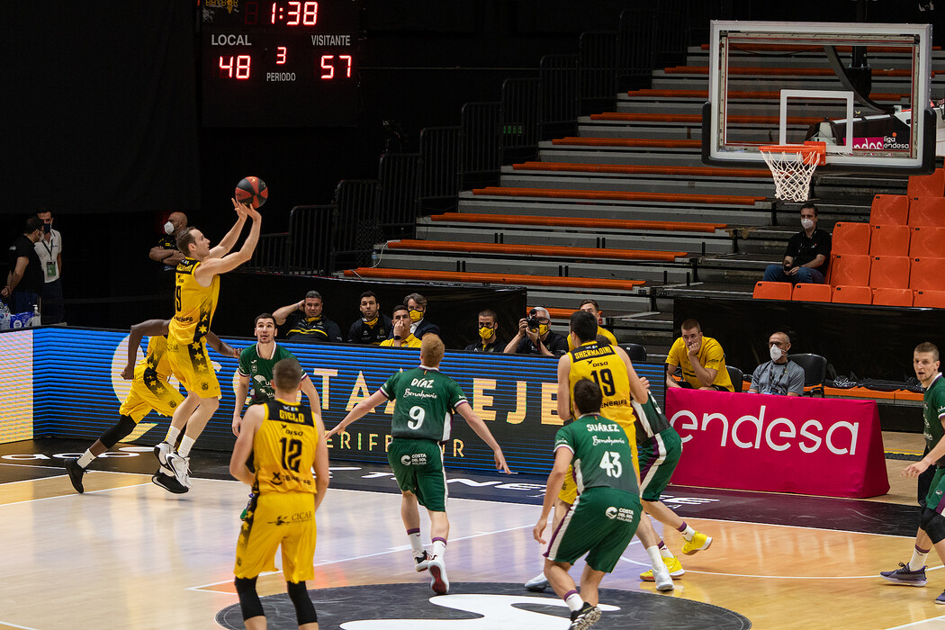 Incidencias: Segundo partido de la primera jornada del Grupo A de la fase final de la Liga ACB, disputado en el pabellón Fuente de San Luis de Valencia. Antes del encuentro se guardó un minuto de silencio por los fallecidos a causa de la COVID-19.