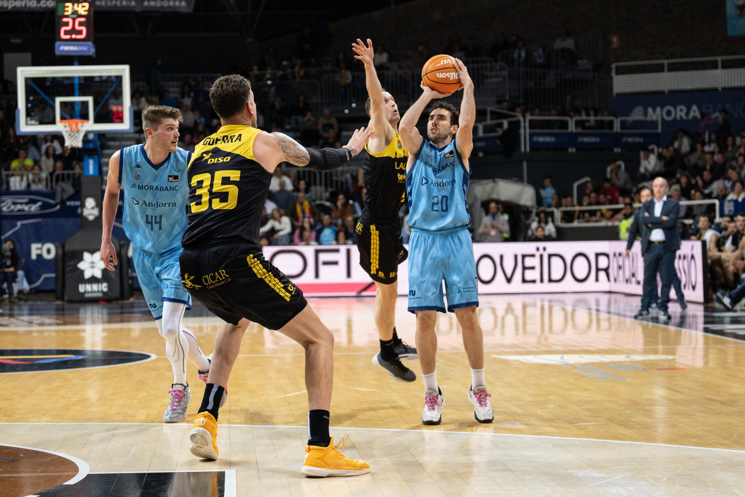Por su parte, MoraBanc Andorra intentaba reencontrarse en el caos, pero la canasta parecía haberse convertido en una quimera inalcanzable para los hombres dirigidos por Natxo Lezcano. Mientras tanto, David Krämer siguió a lo suyo, sumando dos triples consecutivos más. El canarista cerró la primera mitad con 23 puntos de los 48 de su equipo, una actuación que resonaba como un eco de grandeza en el Poliesportiu D’Andorra.
